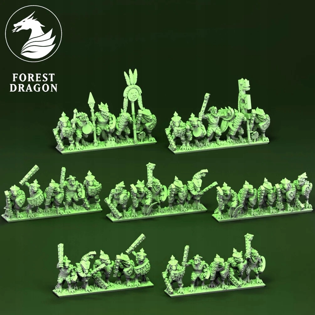 Пехота воинов-рептилий, Армия ящеров, Воитель 10 мм – 7 полос (включая две баннерные полосы) плюс 4 подставки.