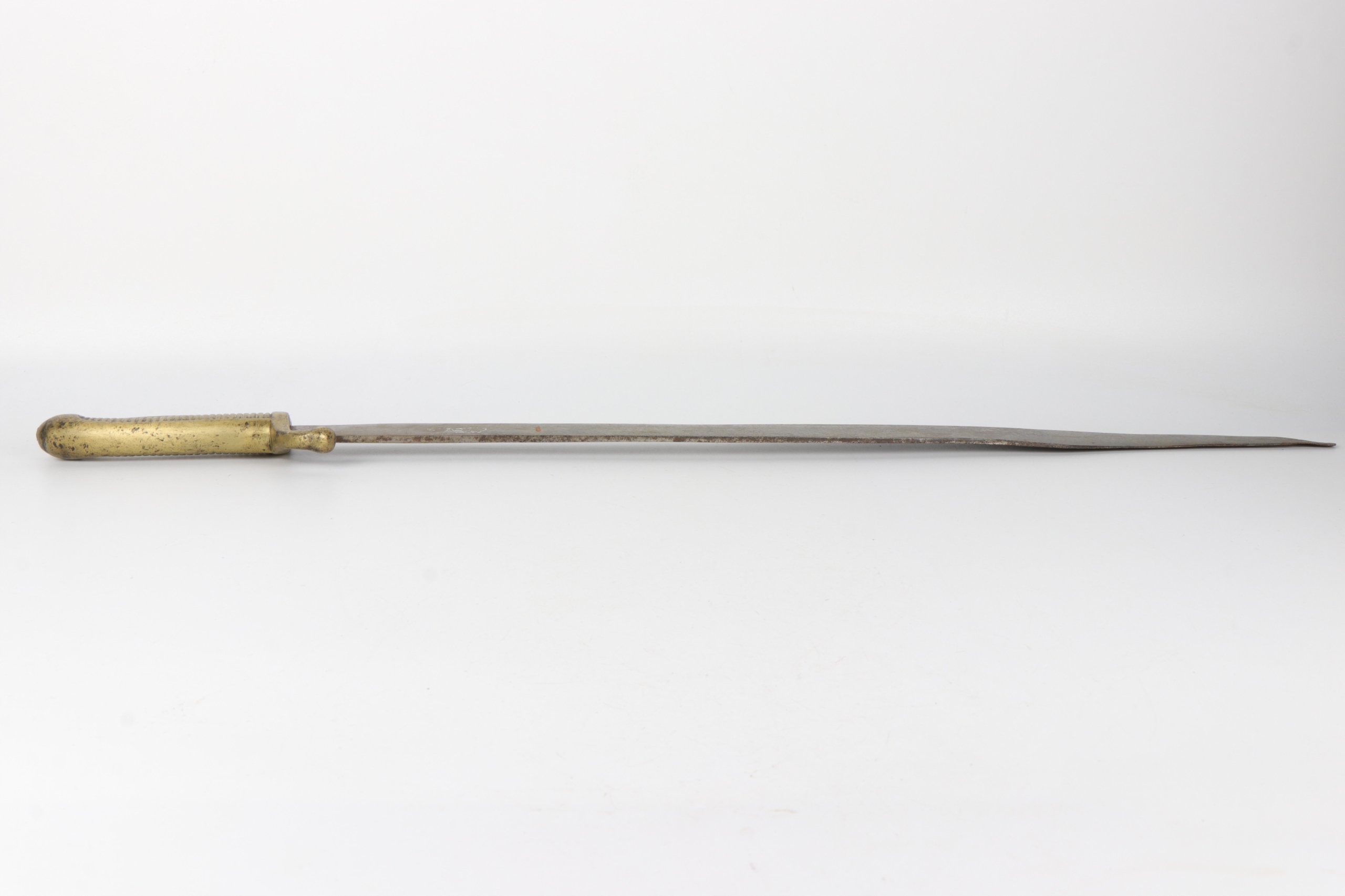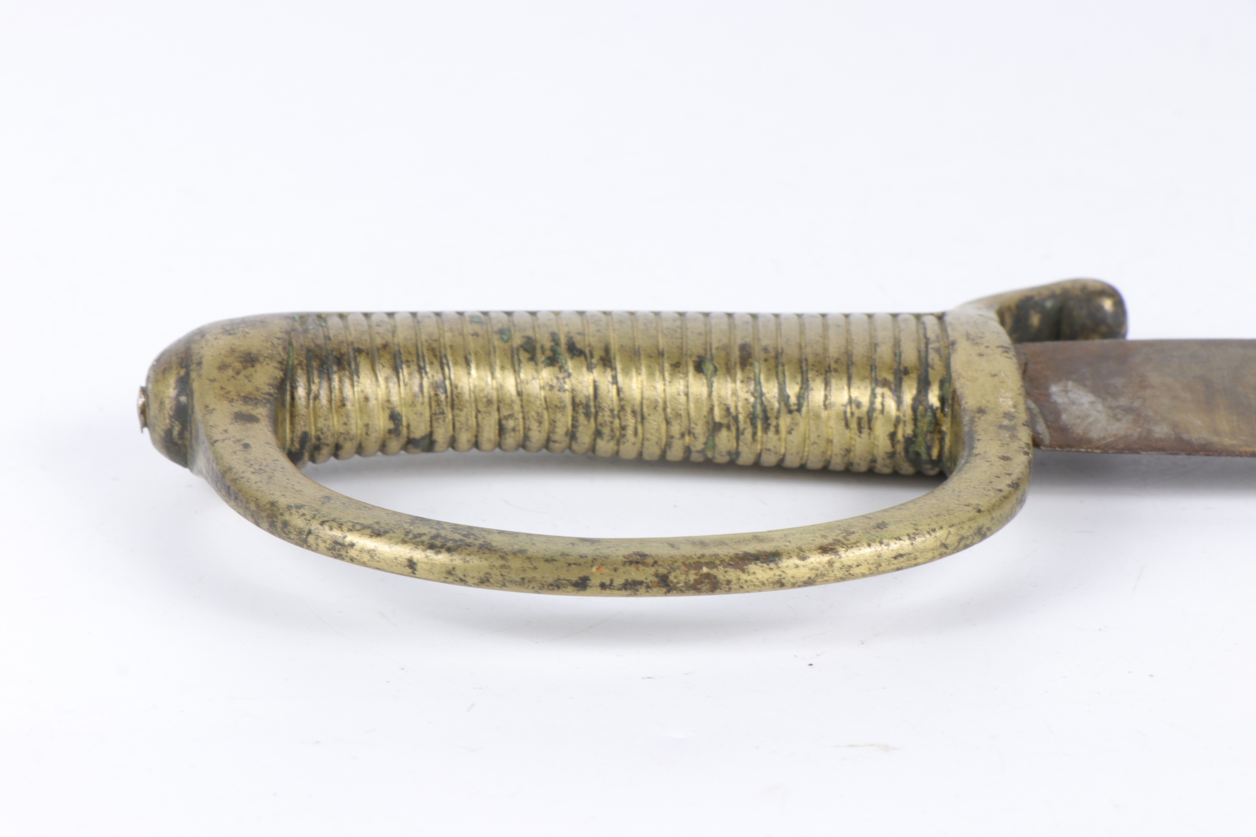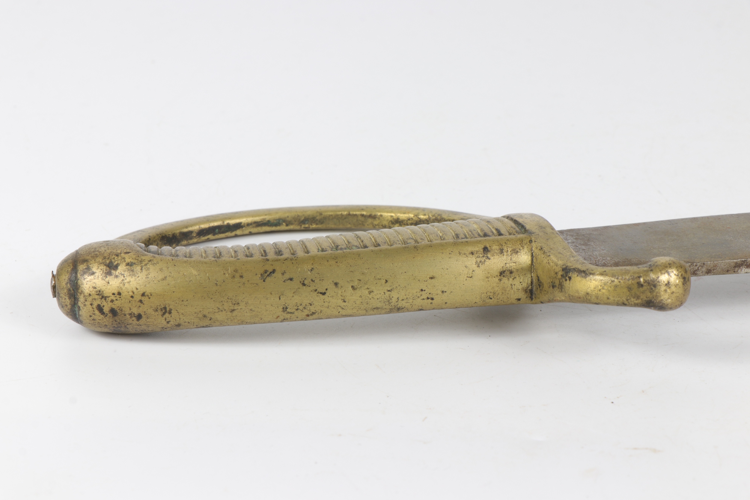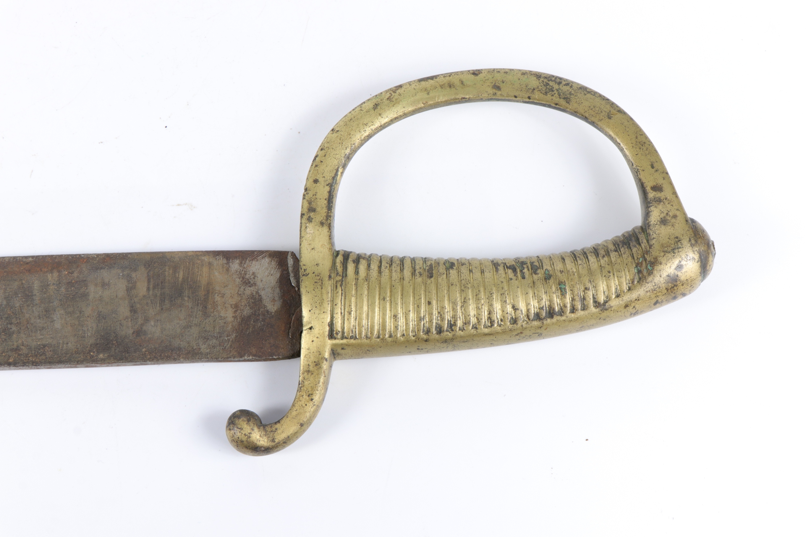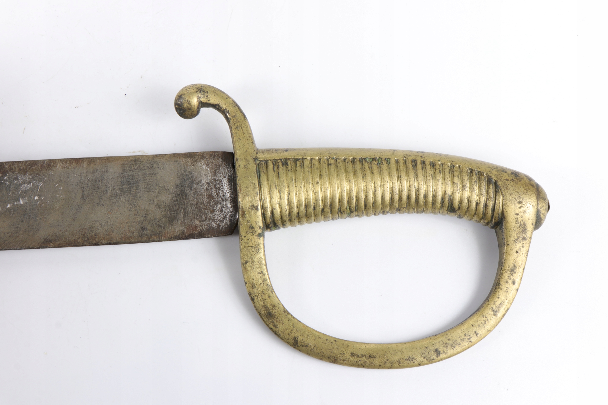 Французская брикетная пехотная сабля AN XI. Рукоять латунная, с 28 ребрами. Клинок выглядит причудливо, возможно, выкован в месте выдвижения (?).