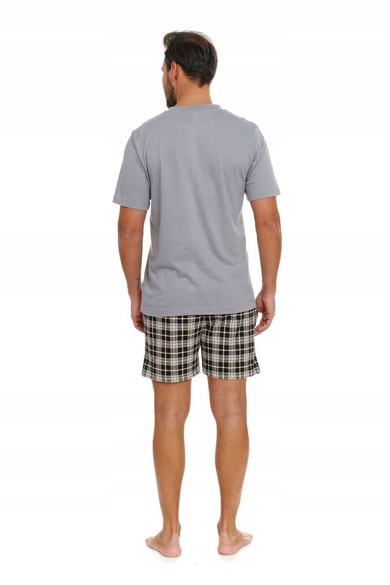 Удобная хлопковая мужская пижама с коротким рукавом и шортами в клетку.
