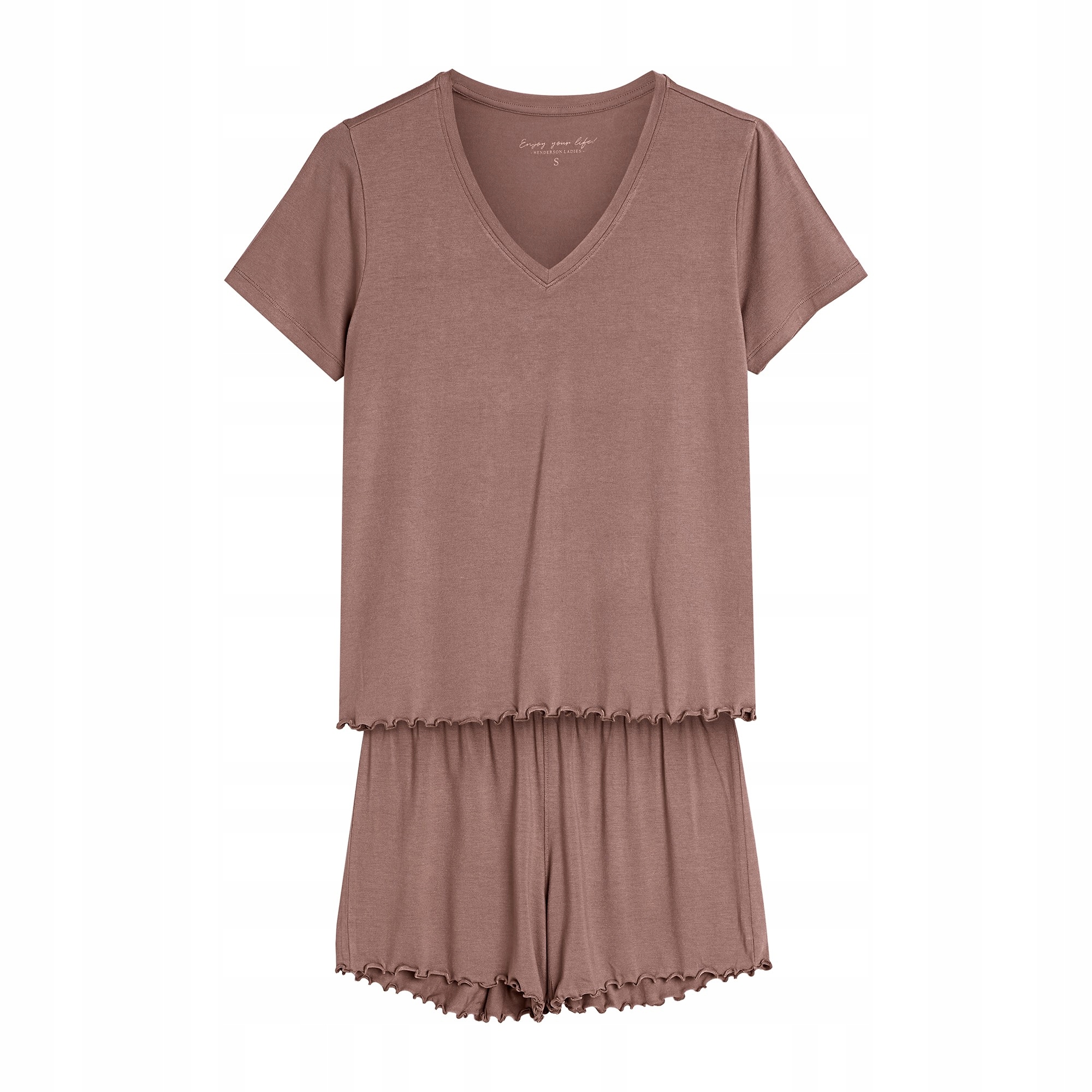 Пижама женская - качественная вискоза - футболка с короткими рукавами - V-образный вырез - короткие шорты - широкий пояс на резинке, отделанный трикотажным полотном. Состав: футболка 95% вискоза, 5% эластан