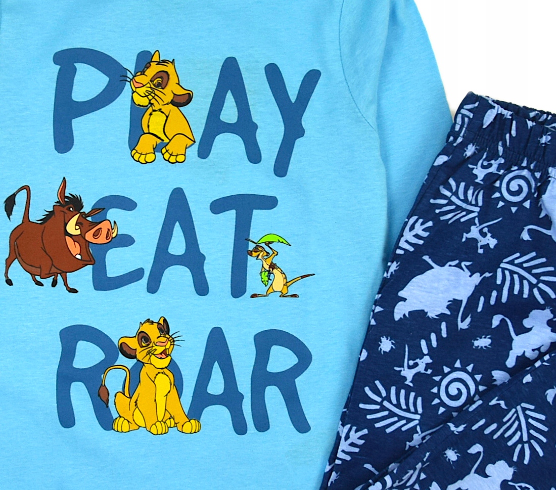 Оригинальные пижамы мальчиков по лицензии. Хороший и нежный для тела. Пижамы с любимыми героями сказки, король Львиной Симбы, Тимон, Пумба. Блузка с простым, свободным разрезом. Штаны на талии на эластичной ленте, на ногах welt