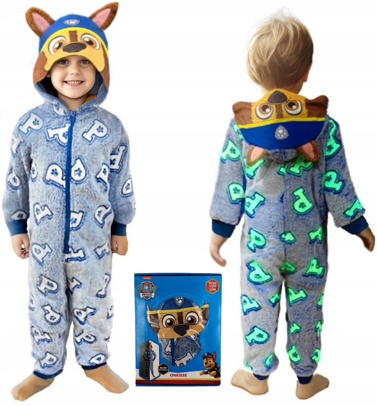 ДЕТСКАЯ ПИЖАМА КИГУРУМИ, КОМБИНЕЗОН, ФЛУОРЕСЦЕНТНО-СИНИЙ, СВЕТЯЩИЙСЯ В НОЧИ, НЕОНОВАЯ РЕБКА, PAW PATROL CHASE OUTSTAND 110 / 116 СМ 5-6 ЛЕТ