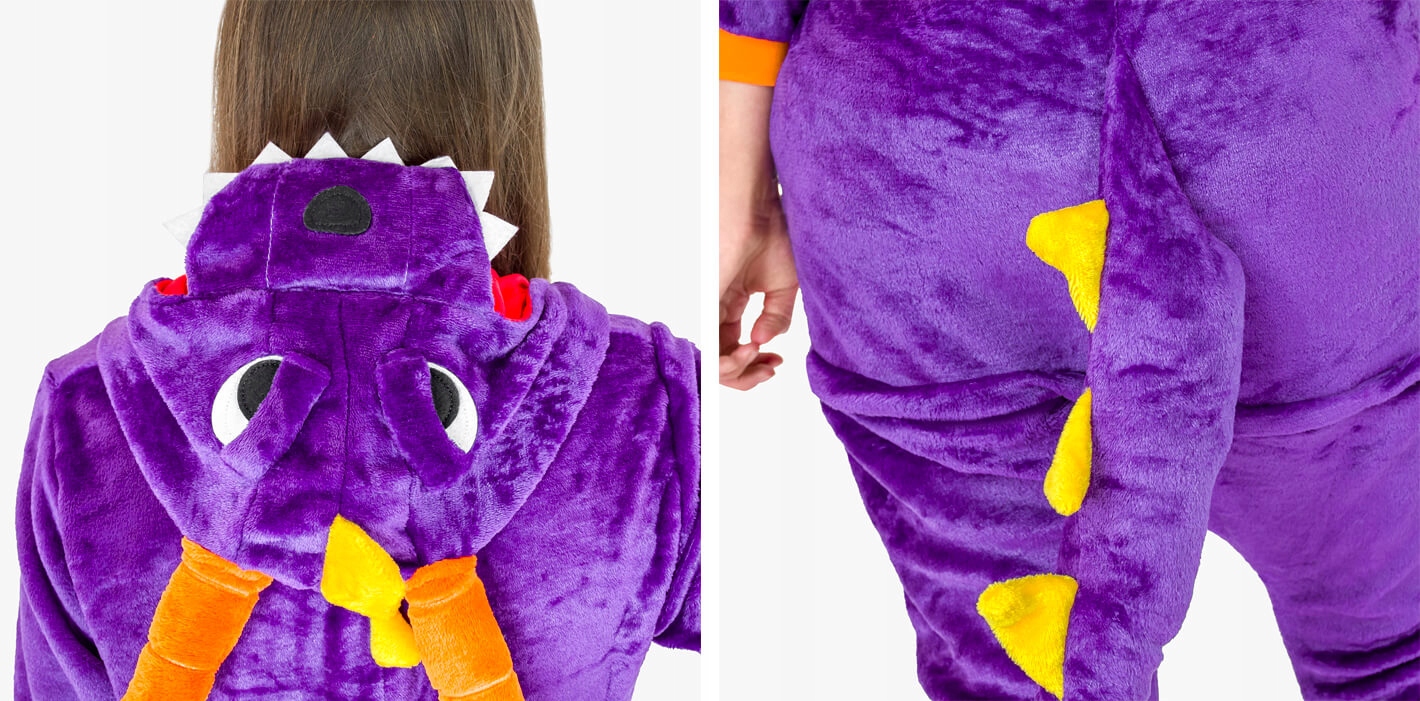 ✨Костюм Дракона –гигантская летающая рептилия из легенд и мифов. По многим легендам, драконы были наделены огромным интеллектом, могли пользоваться магией, знали человеческую речь и могли дышать огнем. Костюм очень фиолетового цвета и имеет контрастные крылья, на которых не стоит пытаться летать.