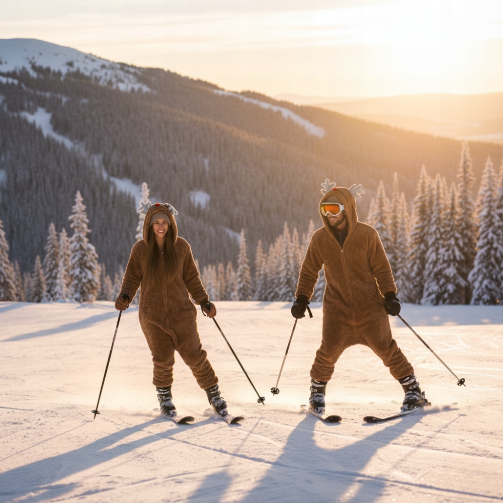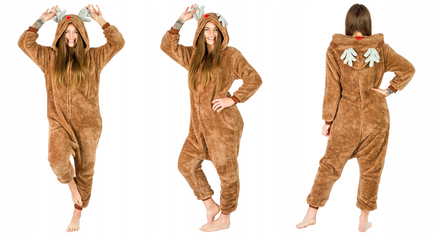 Войдите в мир веселья и комфорта с очаровательным комбинезоном с изображением оленей! Изготовленное из мягкого, теплого материала, оно окутает вас комфортом и идеально подойдет для зимних вечеров дома, праздничных вечеринок или костюмированных посиделок с друзьями. У костюма есть капюшон с очаровательной мордочкой, ушки и характерные оленьи рога, пушистый хвост и практичная застежка для удобного надевания. Олень, символ радости и волшебства Рождества, придаст вашему внешнему виду уютную, неповторимую атмосферу. Это также отличная идея для подарка, который вызовет улыбку и добавит праздничной атмосферы. Благодаря тщательной отделке и качественному материалу костюм прослужит вам долго. Это сочетание веселья, комфорта и оригинального стиля!