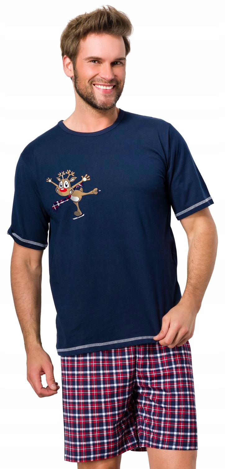Классическая мужская пижама, состоящая из гладкой блузки с очаровательным оленем в сочетании с всегда модными брюками в клетку. Вырез обработан резинкой. Контрастная отделка на рукавах и по низу рубашки.