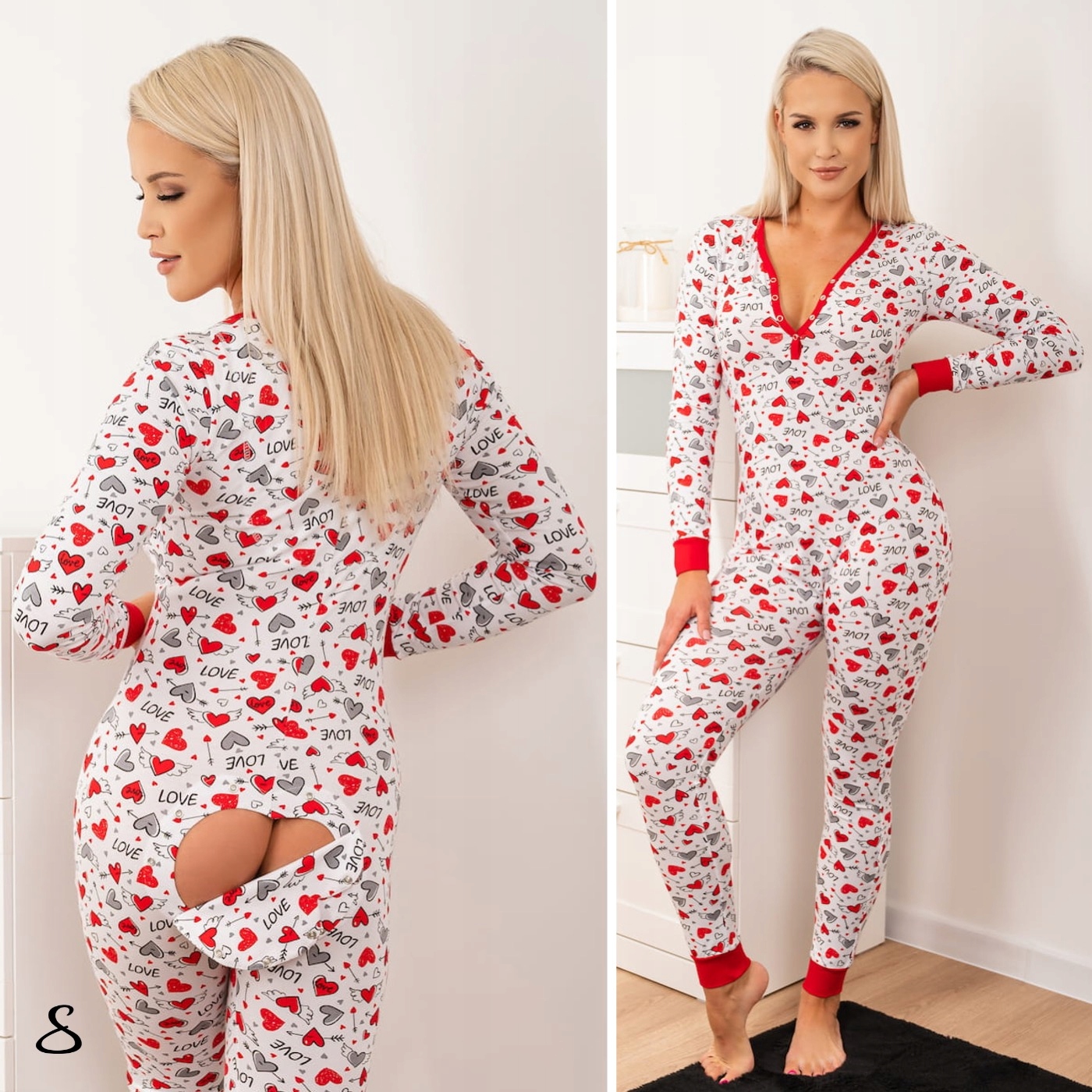 Сексуальный комбинезон с клапаном в форме сердечка на ягодицах.