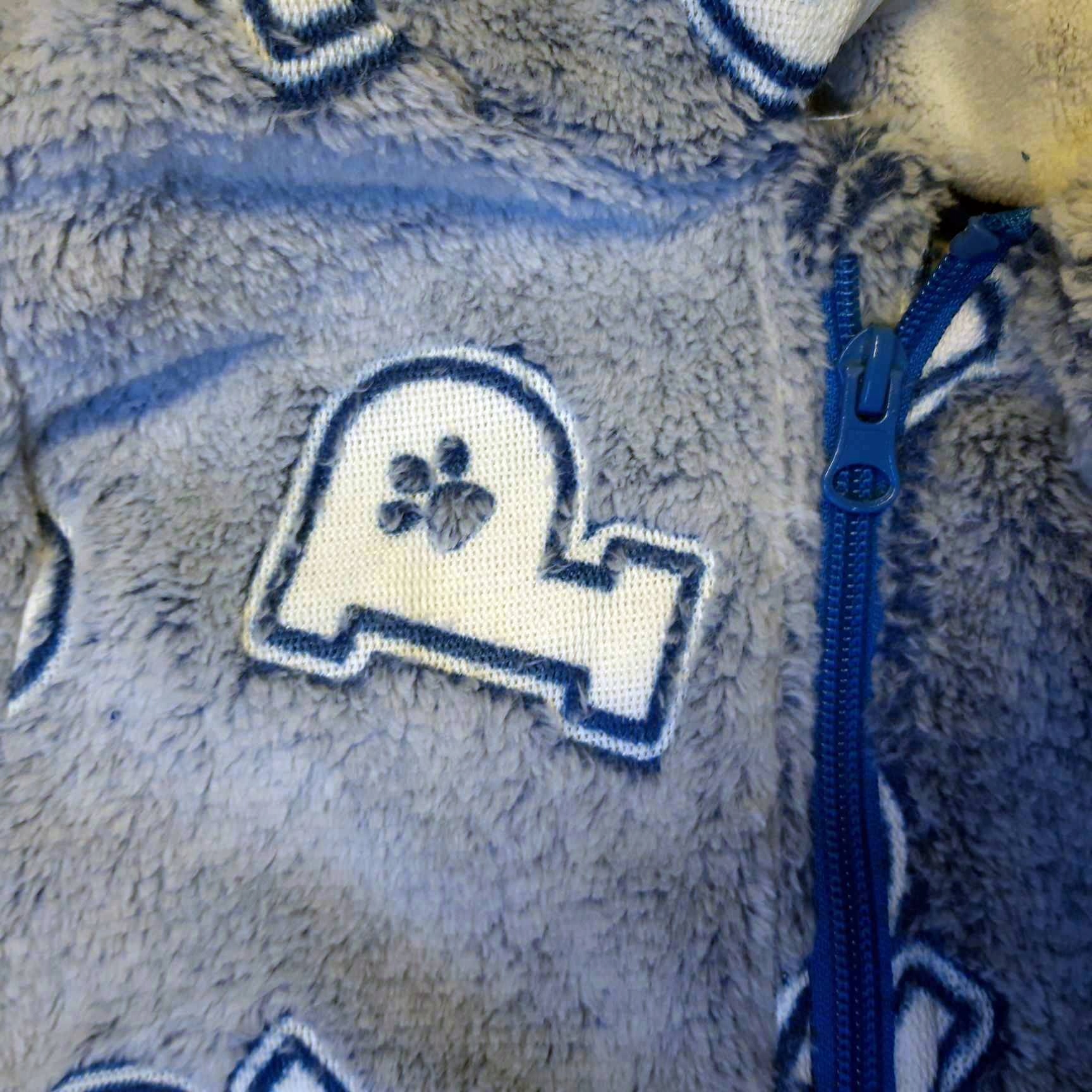 Комбинезон для мальчика выполнен из плюшевого материала, очень приятного на ощупь. На рукавах и штанинах имеются манжеты, которые обеспечивают еще больший комфорт при ношении.