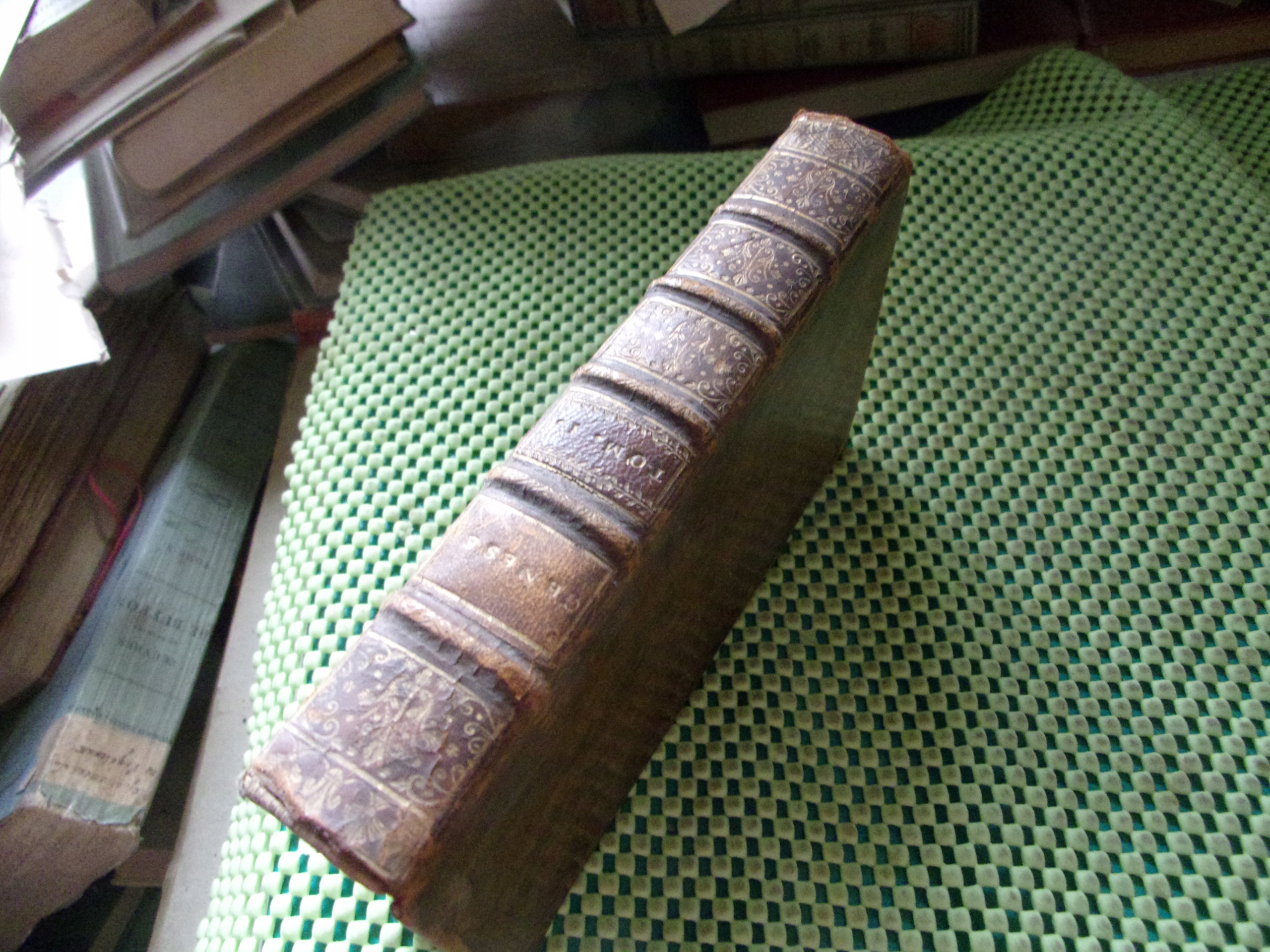 piękna BIBLIA KSIĘGA GENESIS ryc SKÓRA łacina/francuski 1715