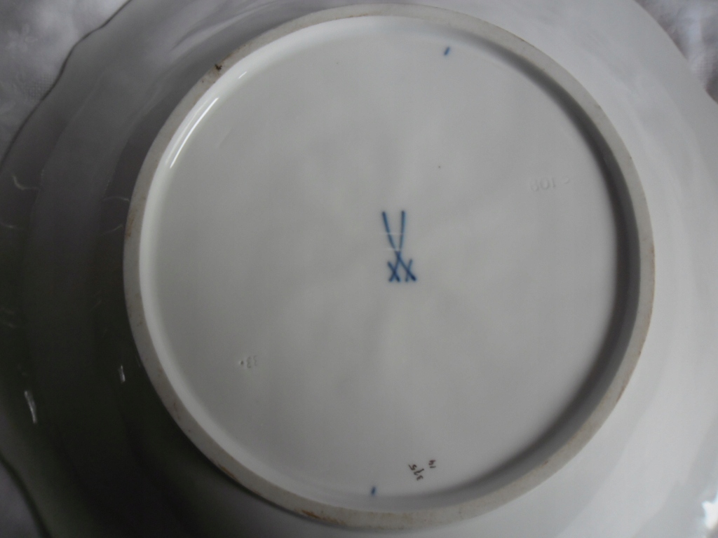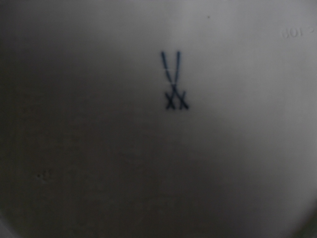 КРАСИВЫЙ АНТИЧНЫЙ УЗОР ИЗГОТОВЛЕН МУССИЙСКИМ ПРОИЗВОДСТВОМ, ПОДПИСАН ДВУМЯ ПЕРЕСЕЧЕННЫМИ МЕЧАМИ С ДВУМЯ РАЗРЕЗАМИ. СОСТОЯНИЕ ОЧЕНЬ ХОРОШЕЕ, БЕЗ ТРЕЩИН И Сколов. ДЕТАЛИ ВИДНЫ НА ФОТО.