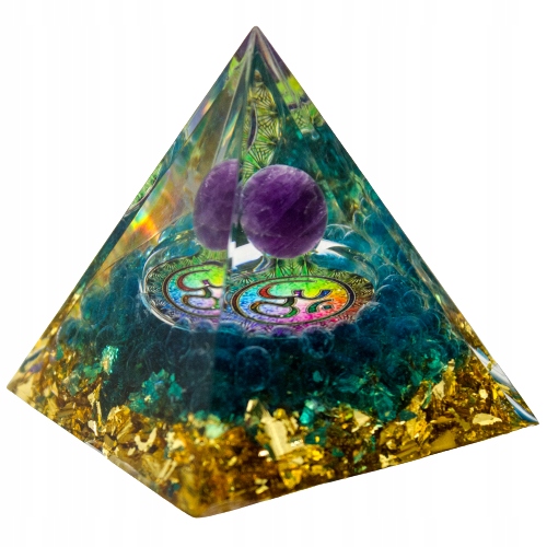 PIĘKNA PIRAMIDA ORGONIT AMETYST ZŁOTA FOLIA OM 5cm