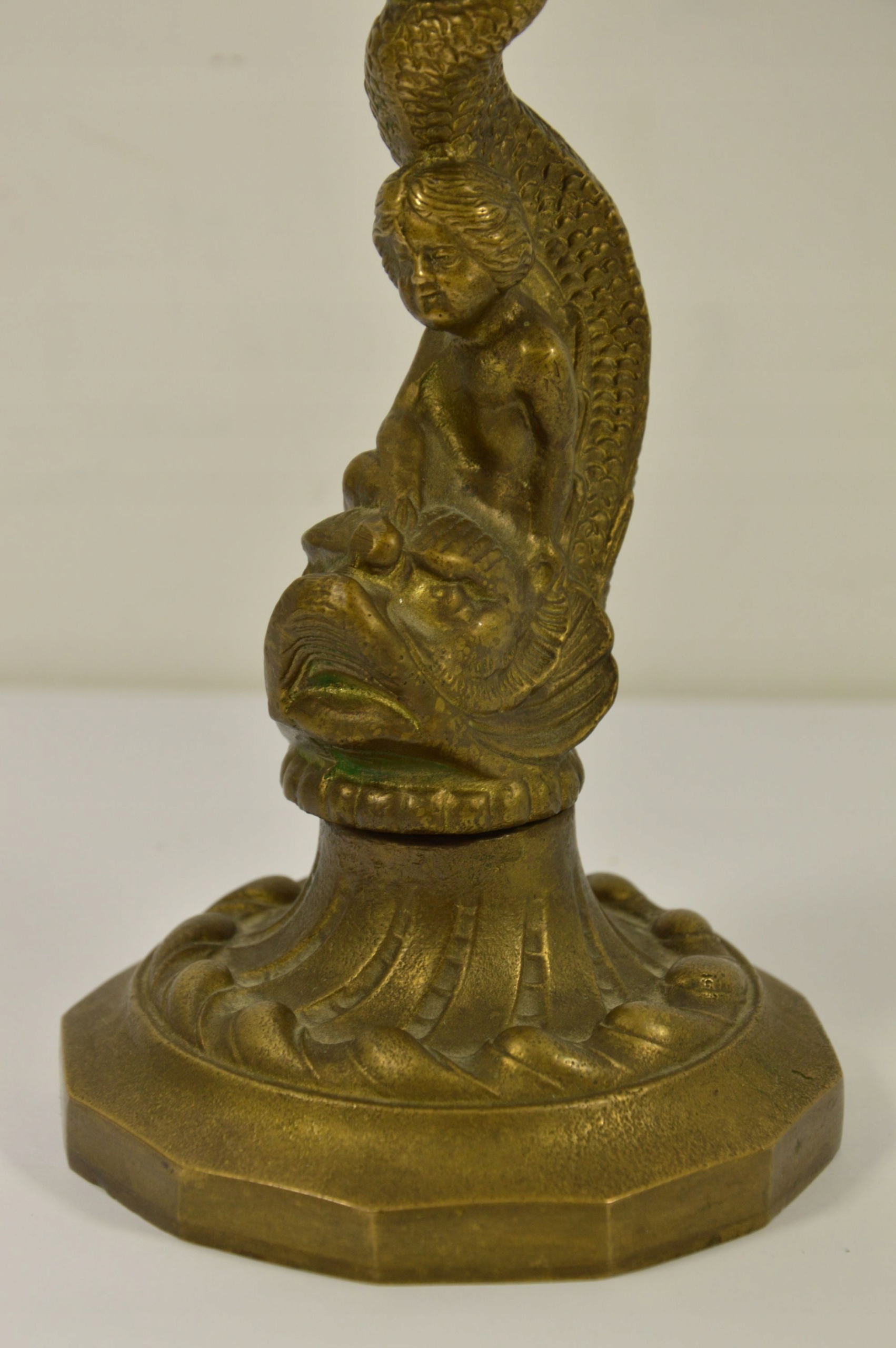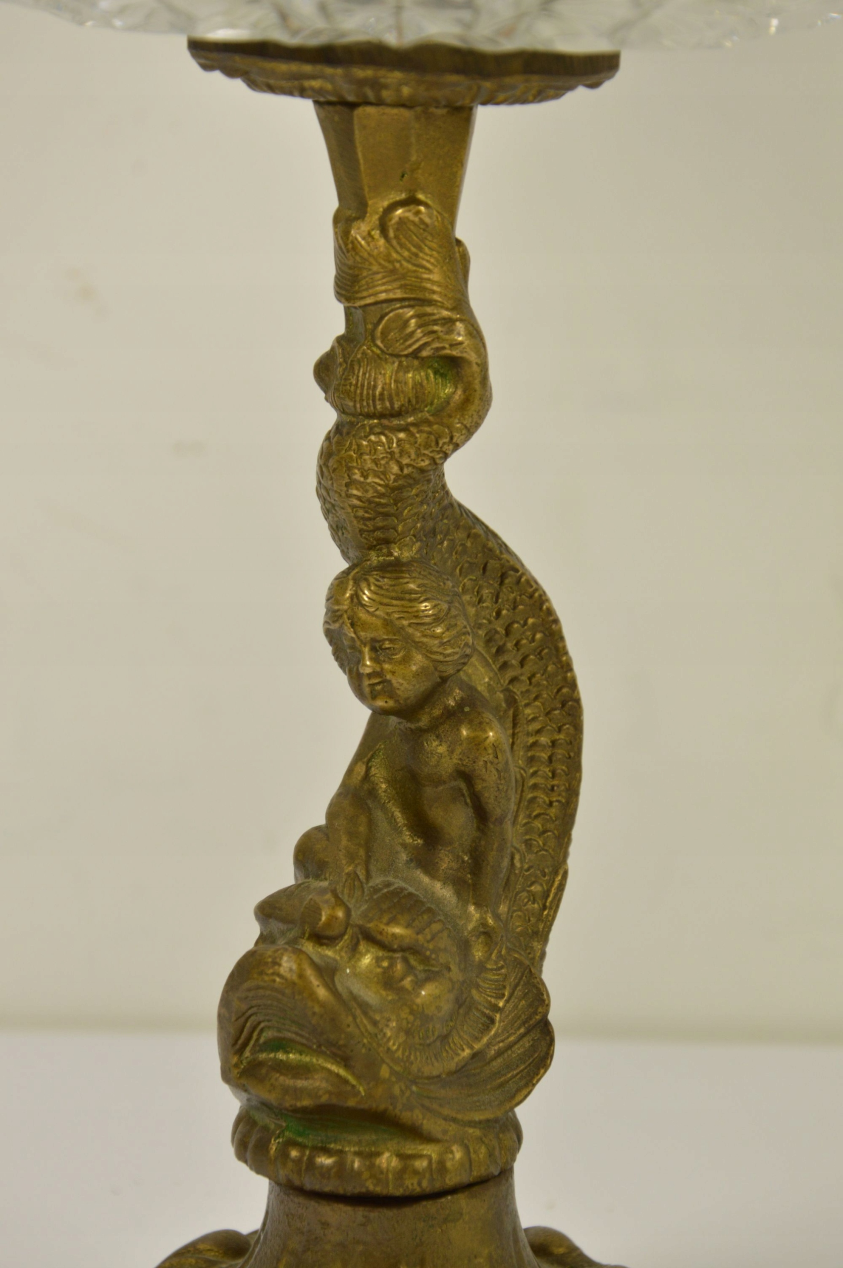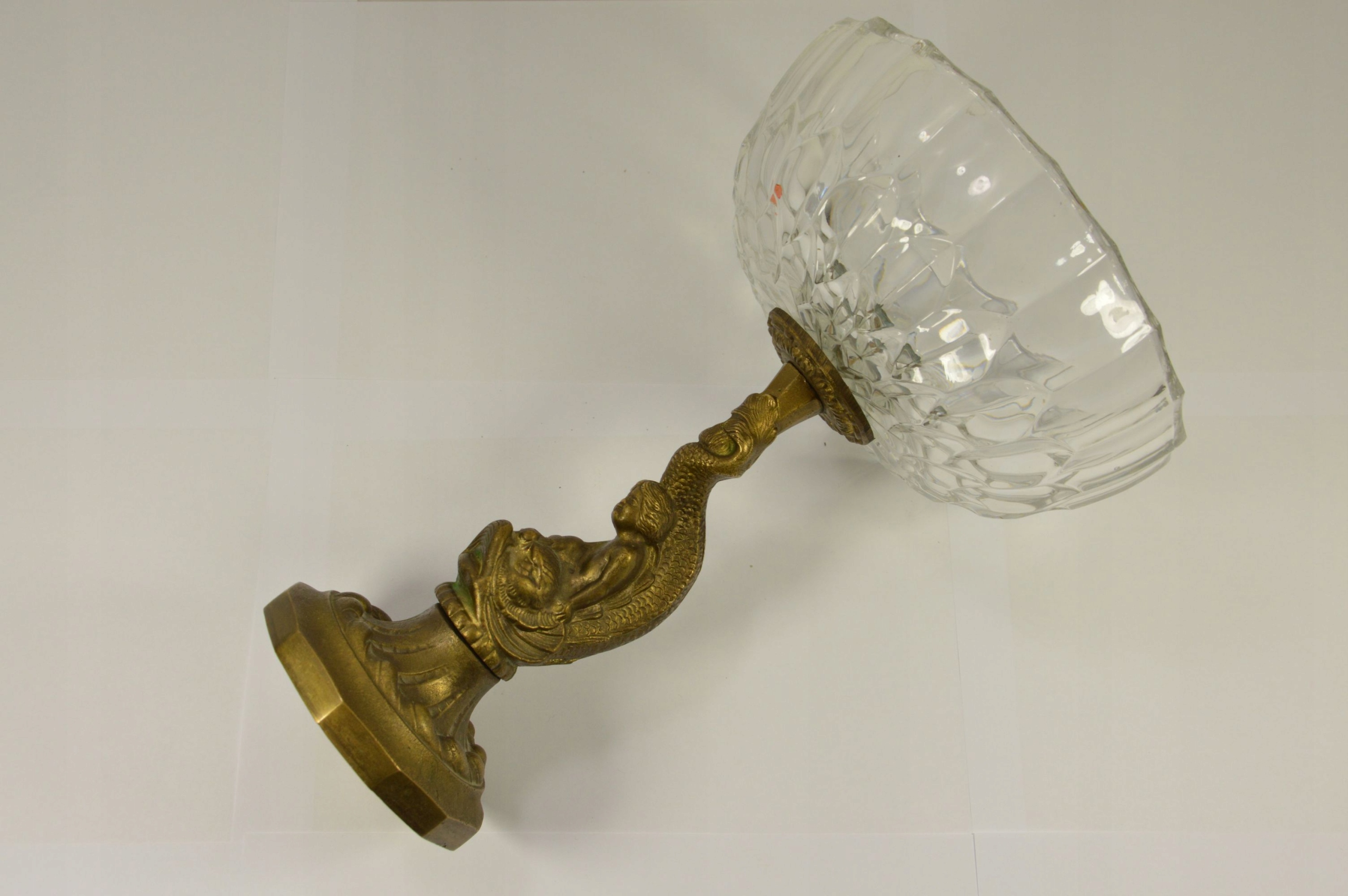 Исключительно красивая старинная фигурная тарелка. Латунная основа, украшенная изображением девушки на драконе, хрустальный кубок. Тарелка выглядит великолепно, красивый и оригинальный предмет той эпохи.