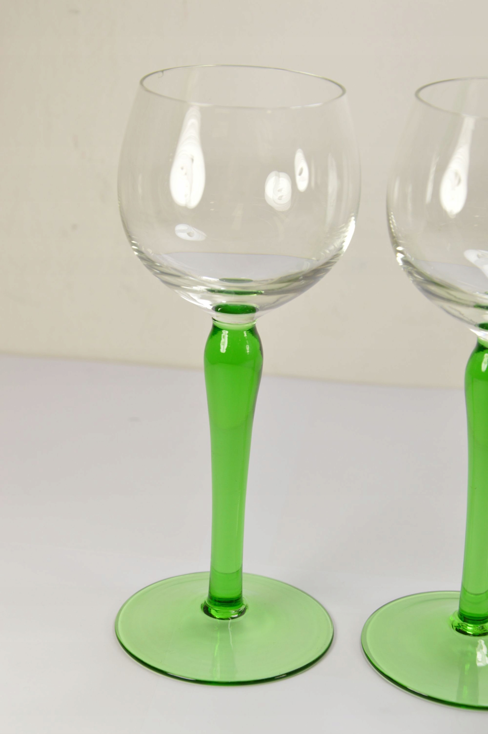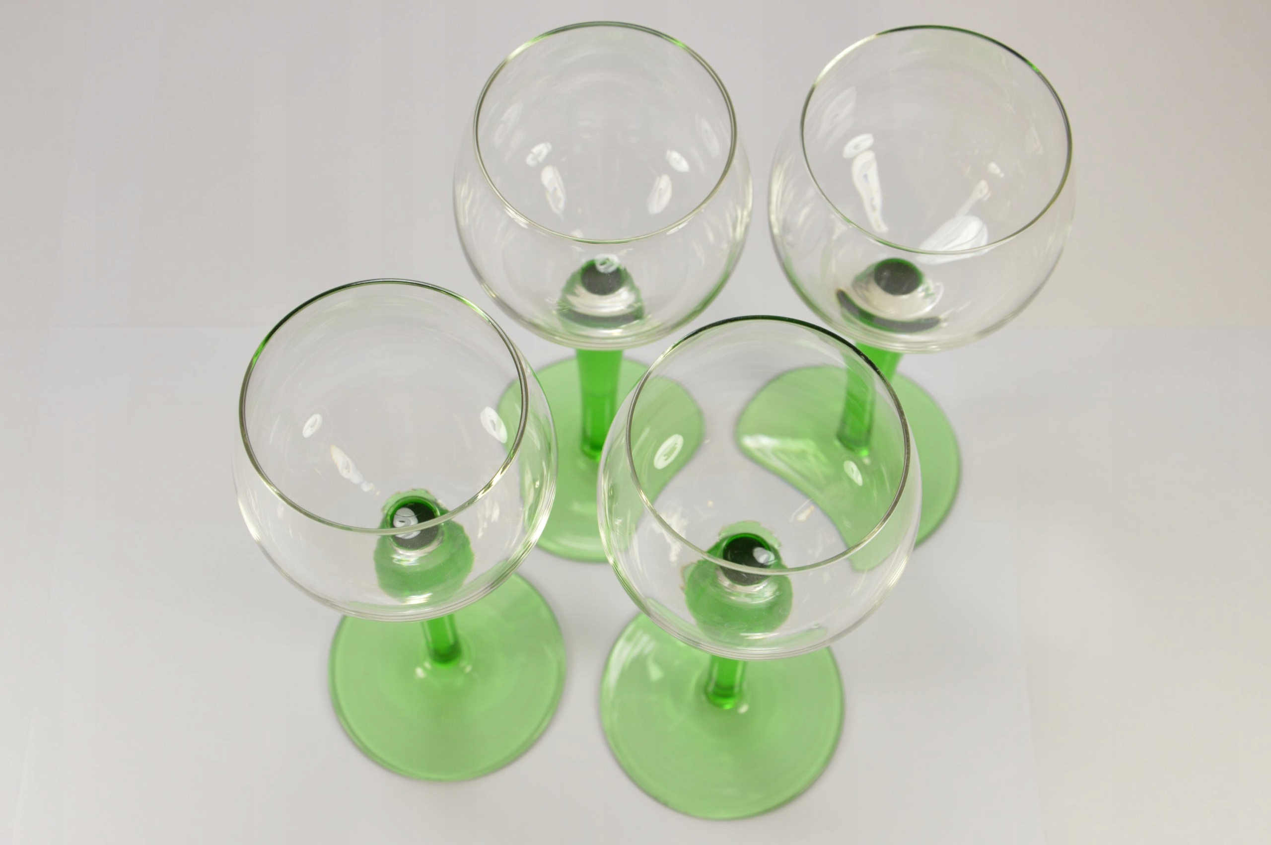 PIĘKNE STARE KIELISZKI DO WINA NA ZIELONEJ NÓŻCE 4 szt. ZOBACZ!