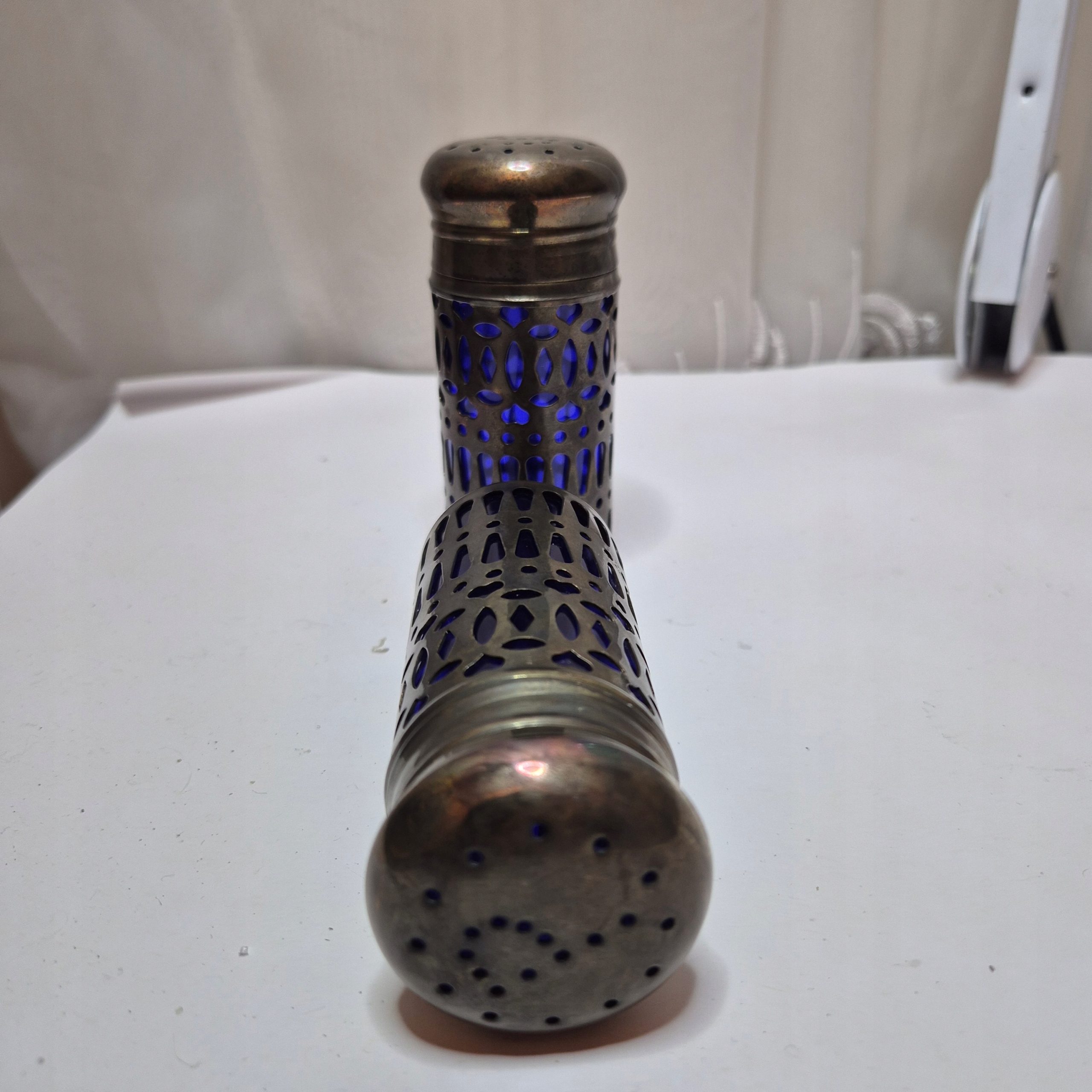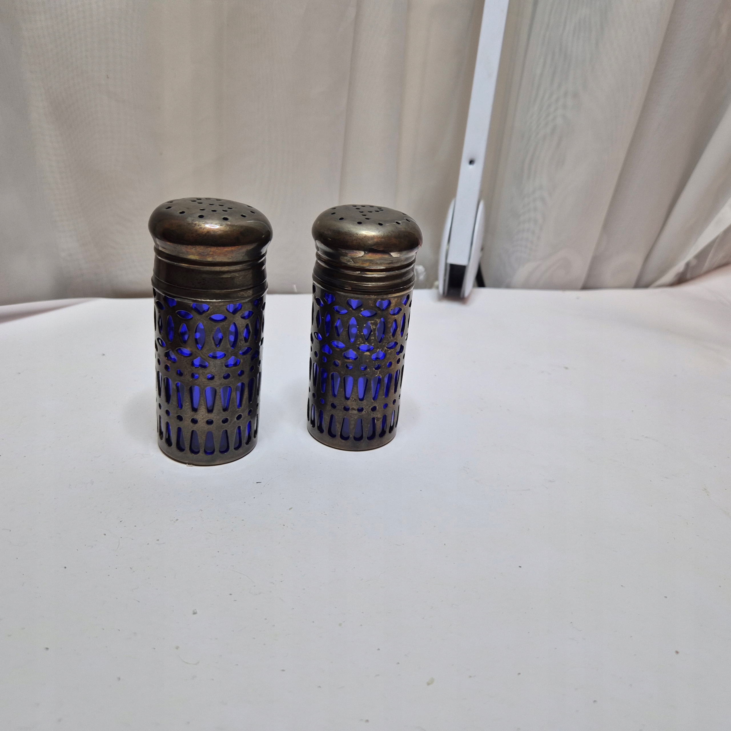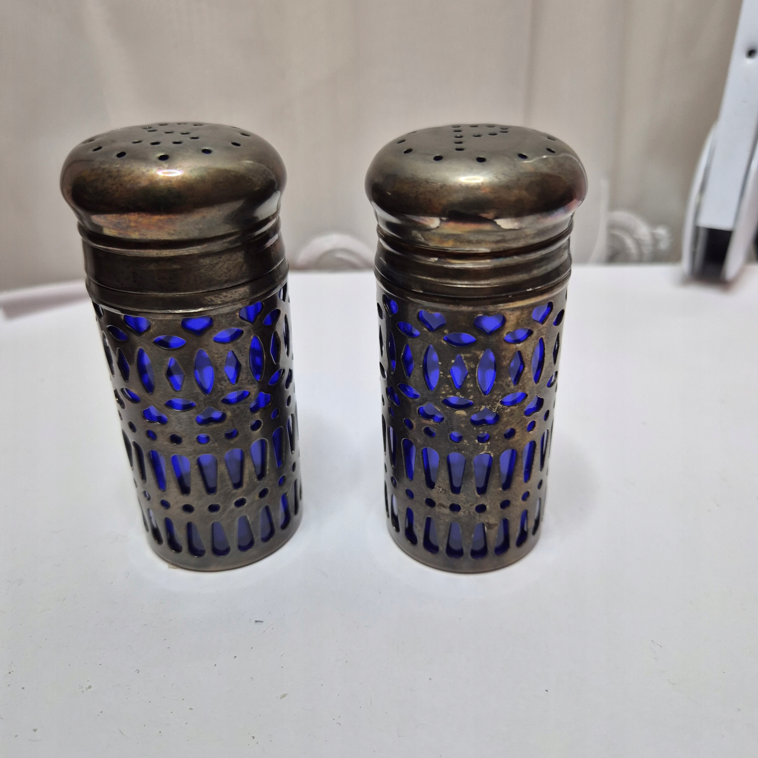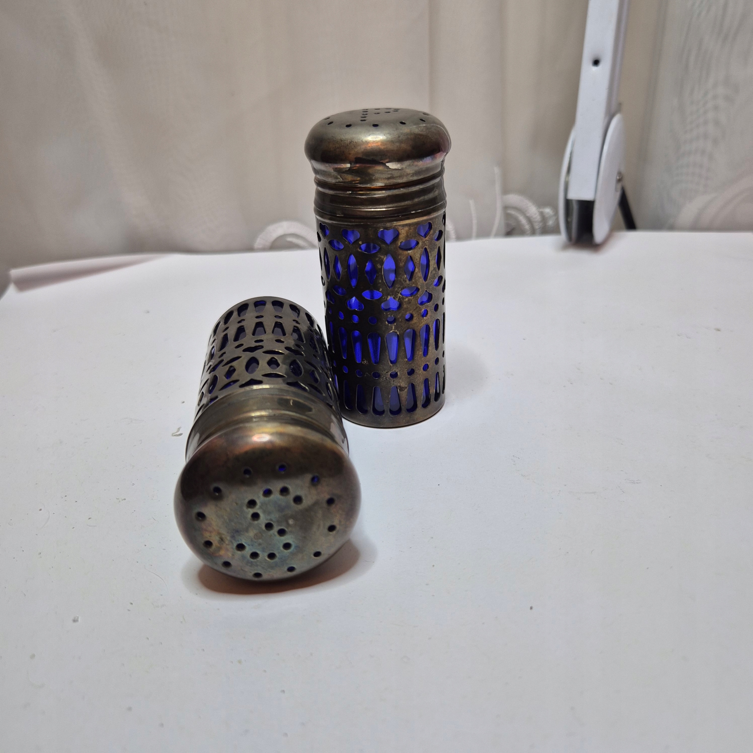 Piękne stare solniczka pieprzniczka kobaltowe szkło plater komplet BS