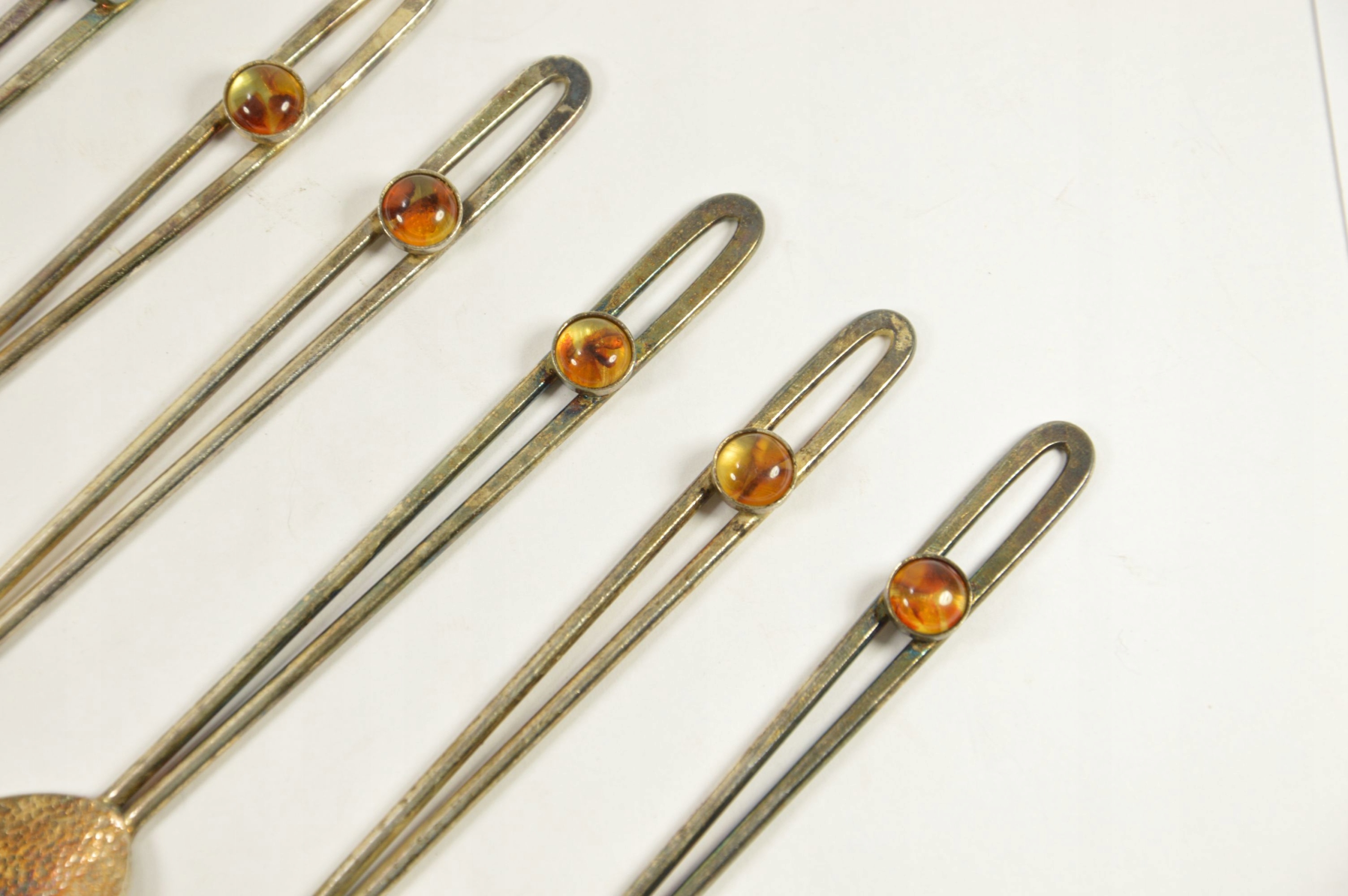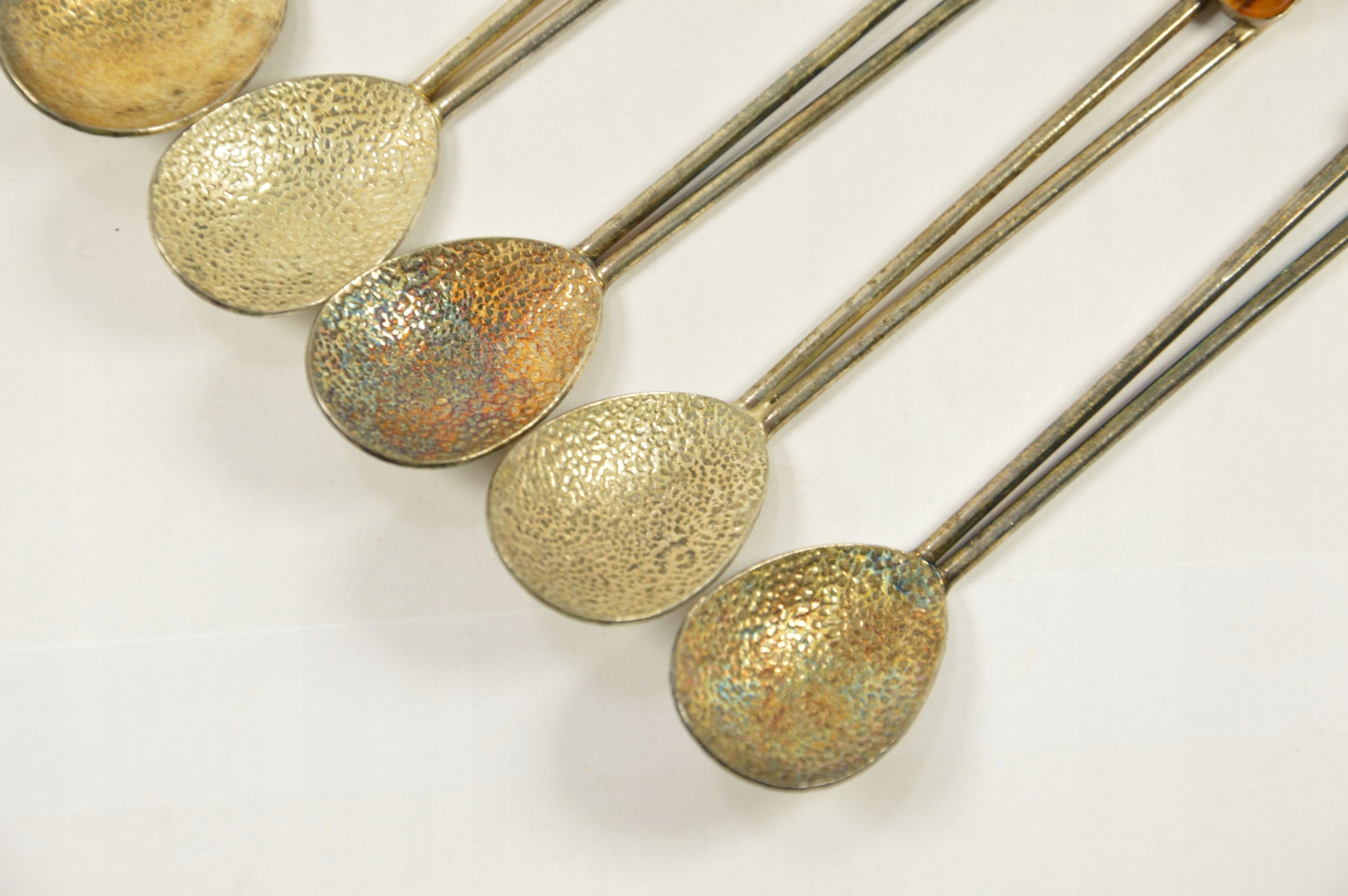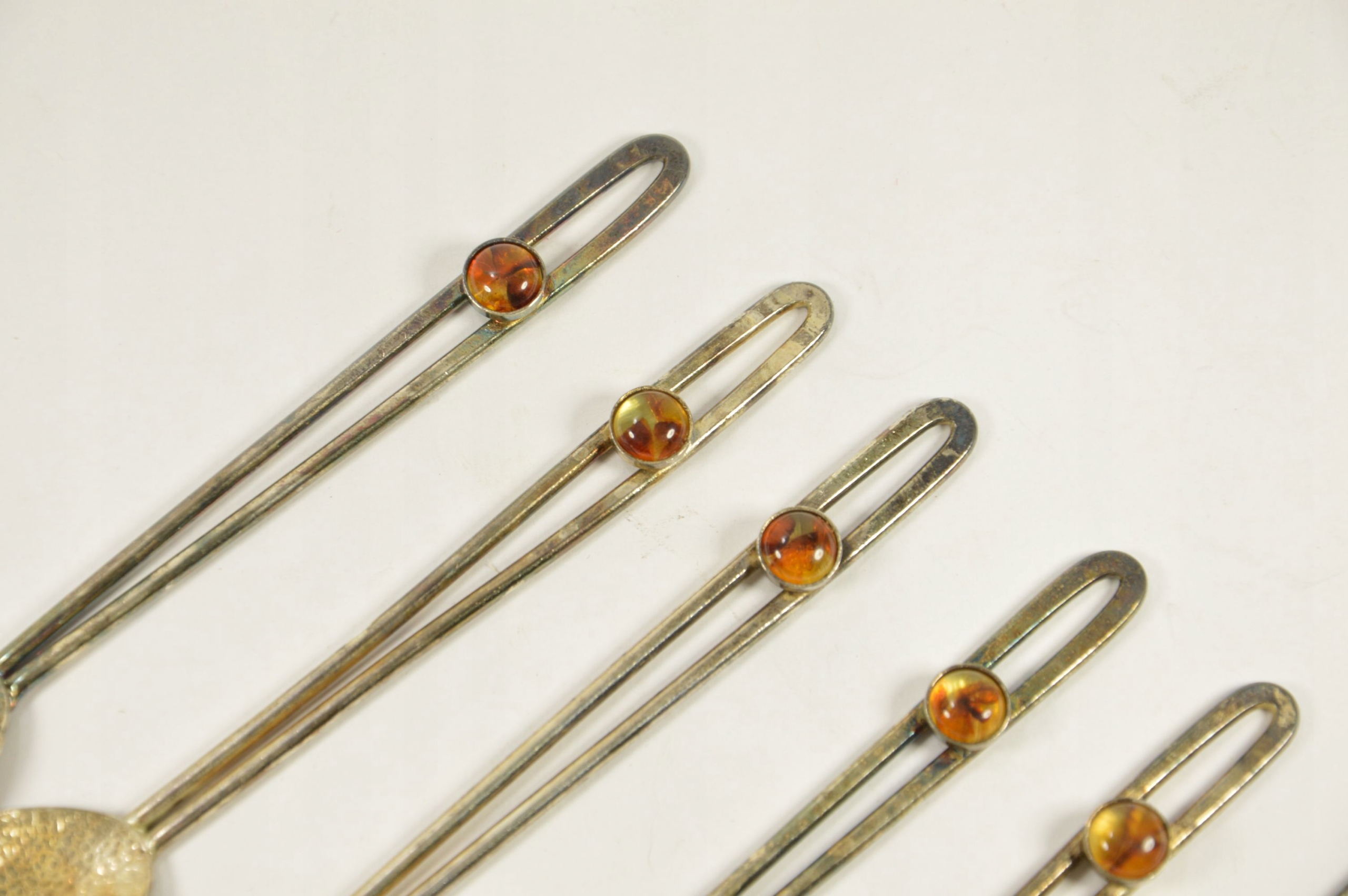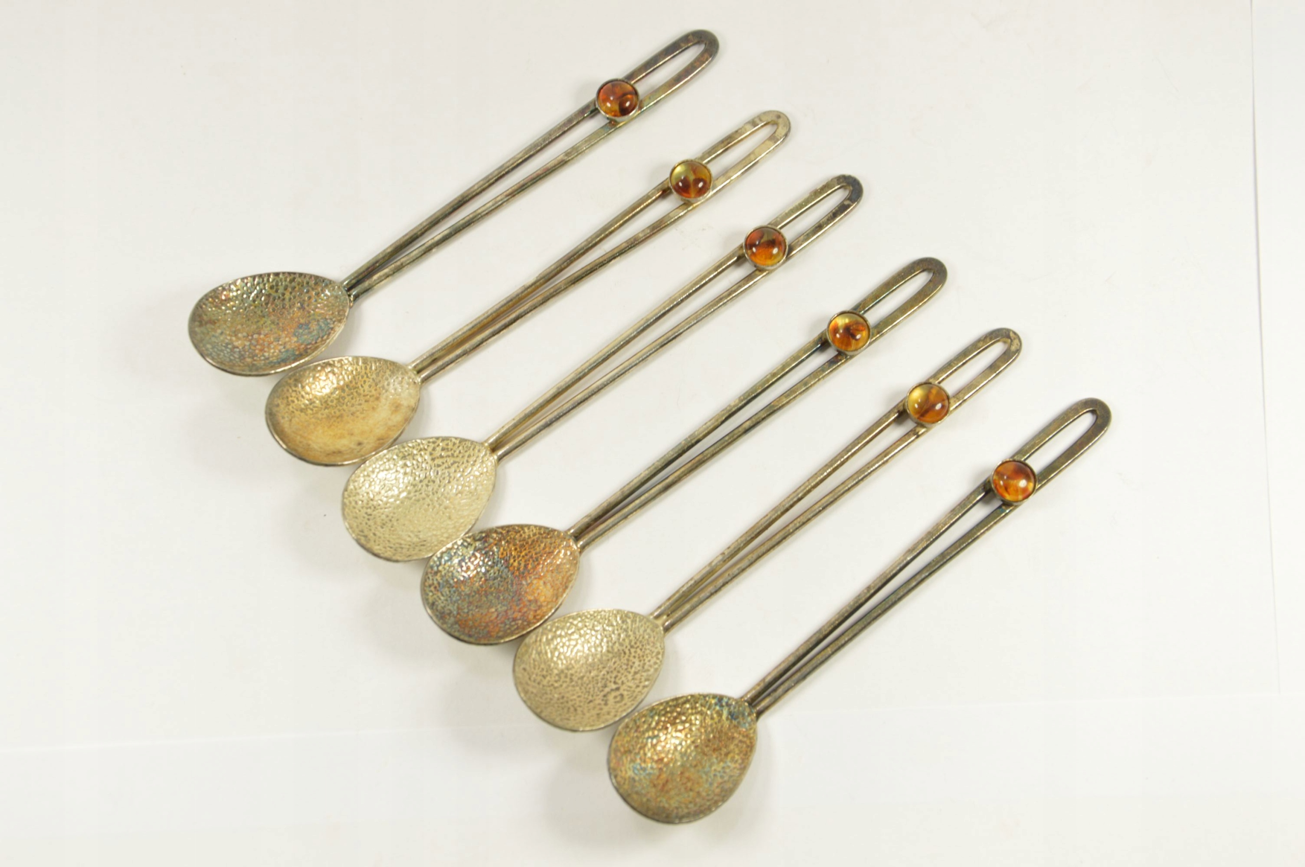 Красивые польские ложки с янтарем - периода Польской Народной Республики, Ремесленный кооператив «Жолибож». Ложки в отличном состоянии, выглядят красиво, в наборе 6 штук.