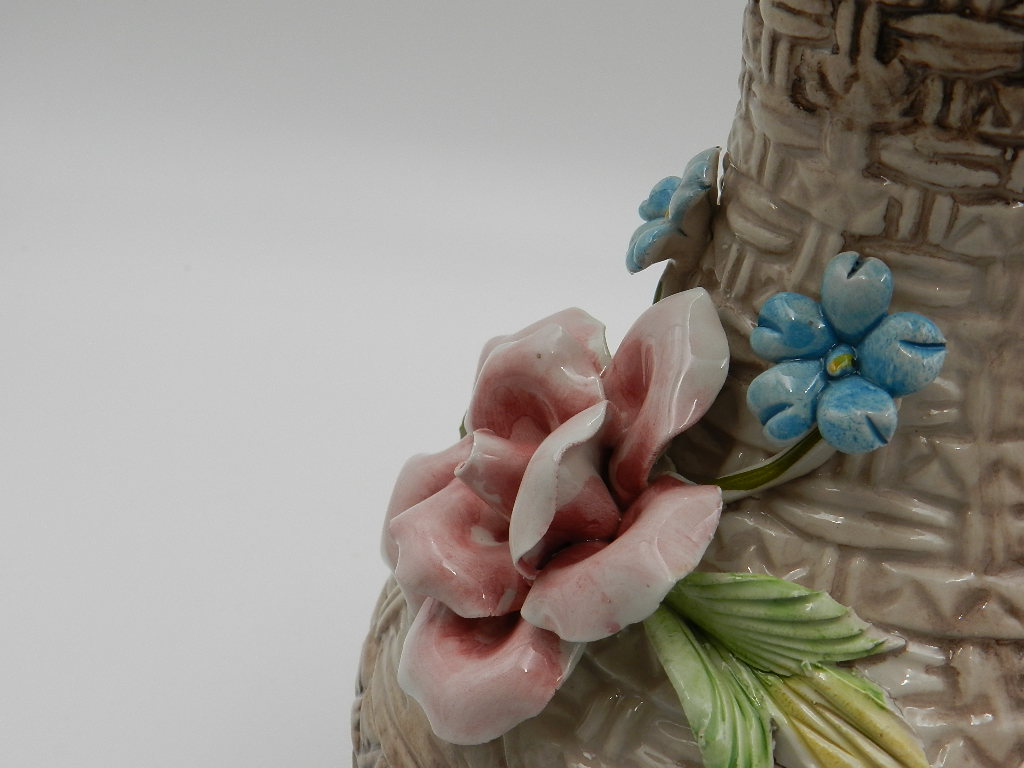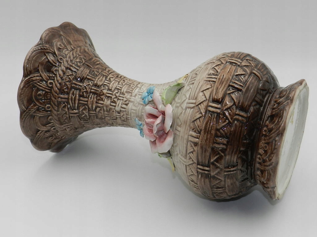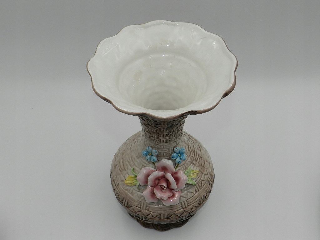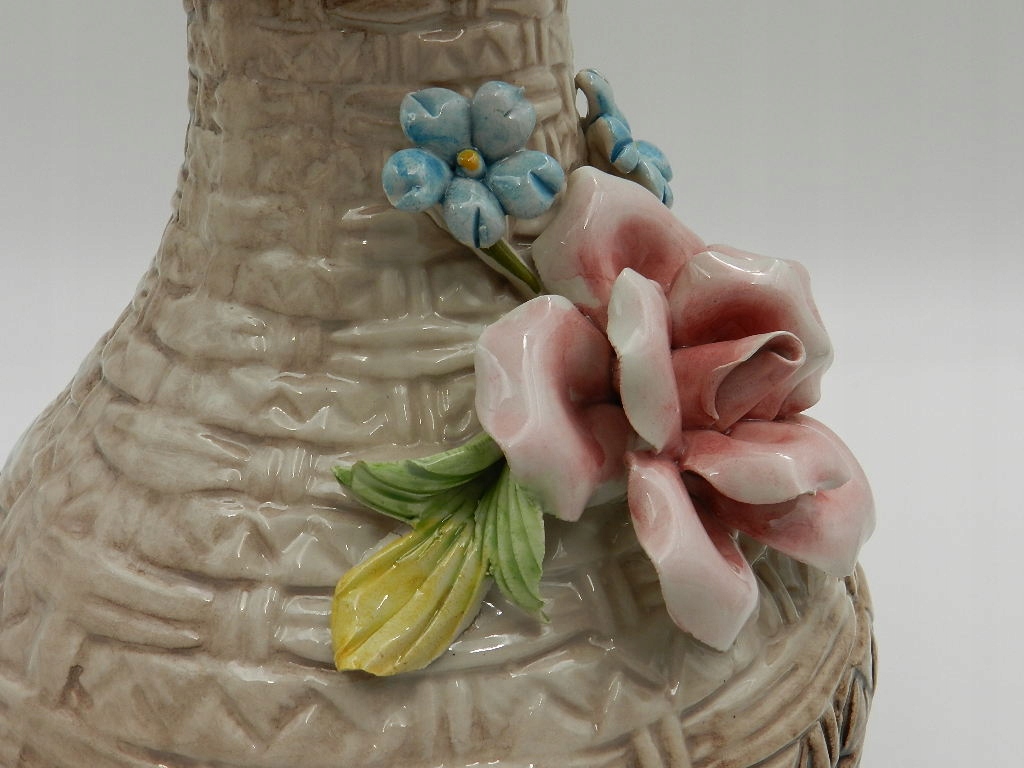 PIĘKNY DUŻY WAZON CAPODIMONTE Z PLASTYCZNĄ RÓŻĄ