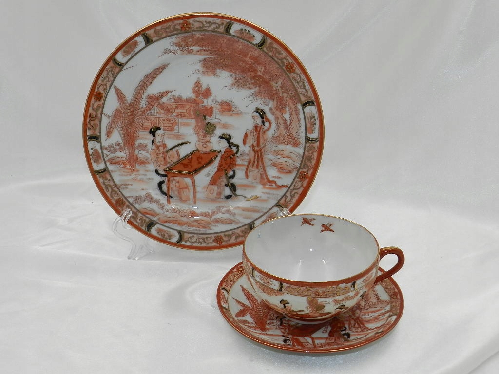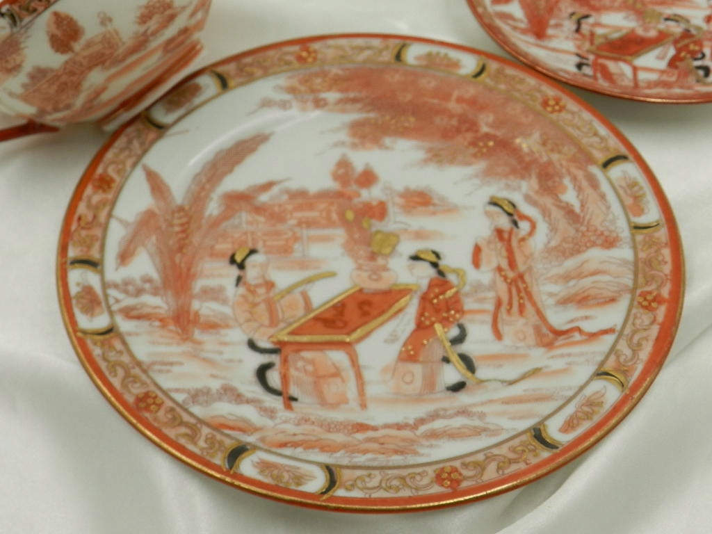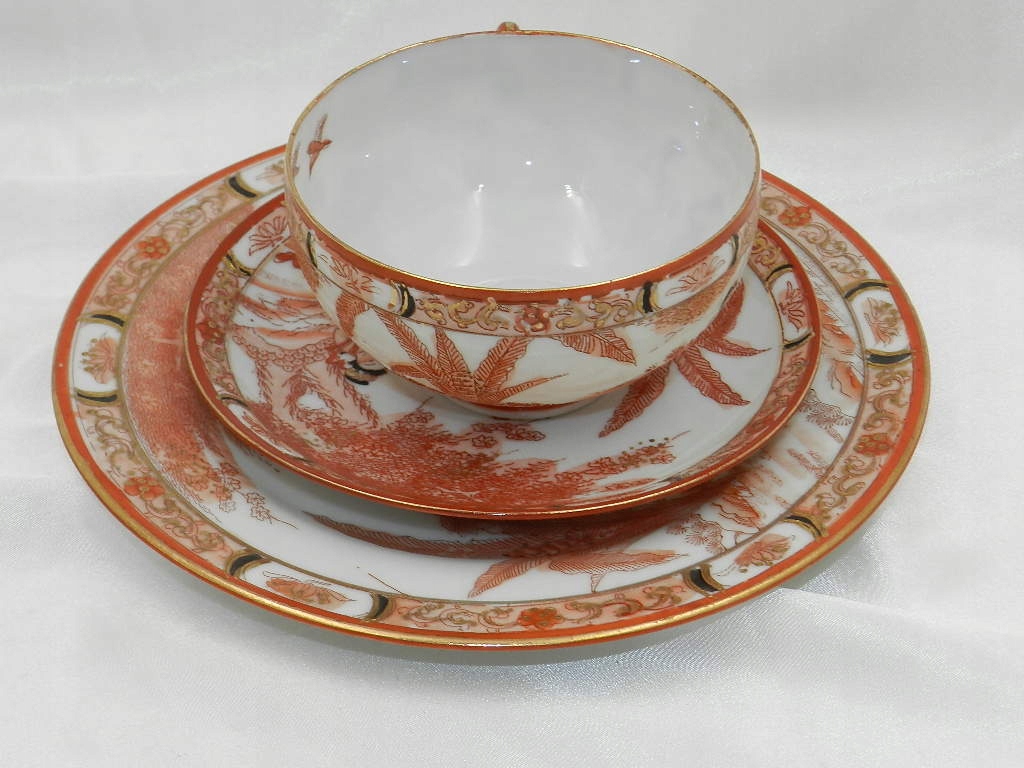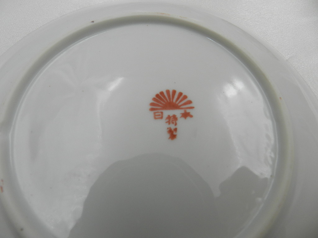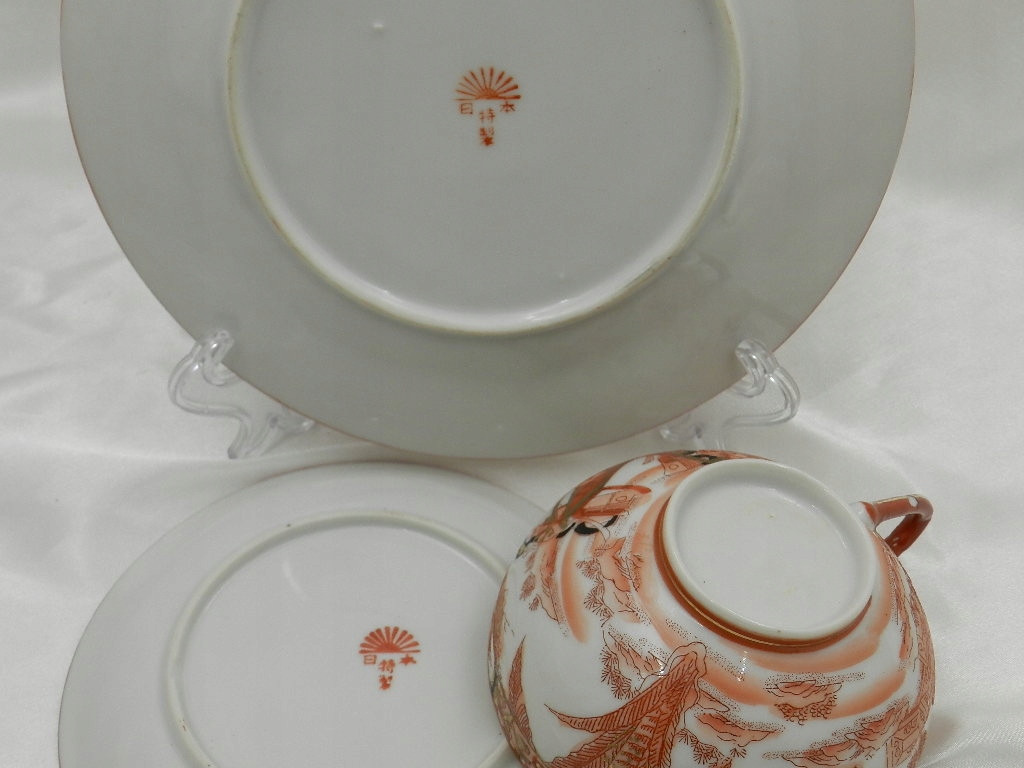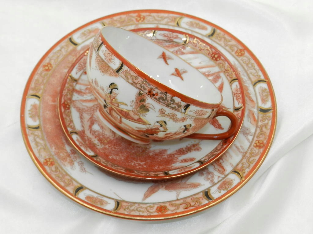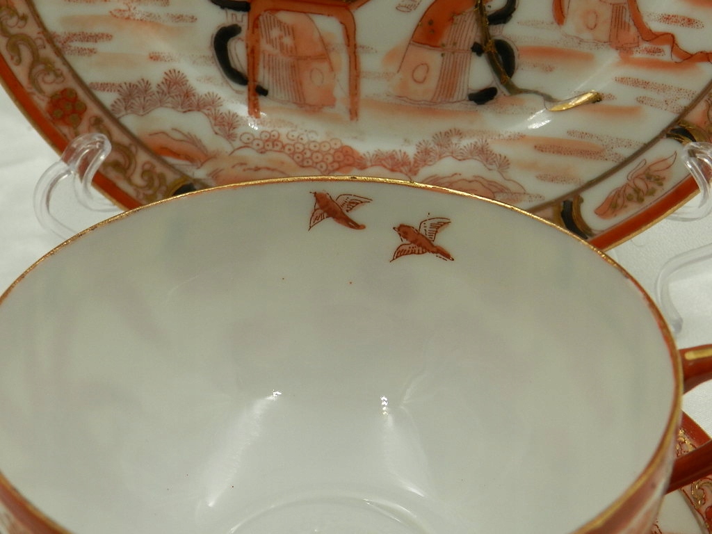 PIĘKNY JAPOŃSKI RĘCZNIE MALOWNY ZESTAW ŚNIADANIOWY Z LITOFANIĄ GEJSZY