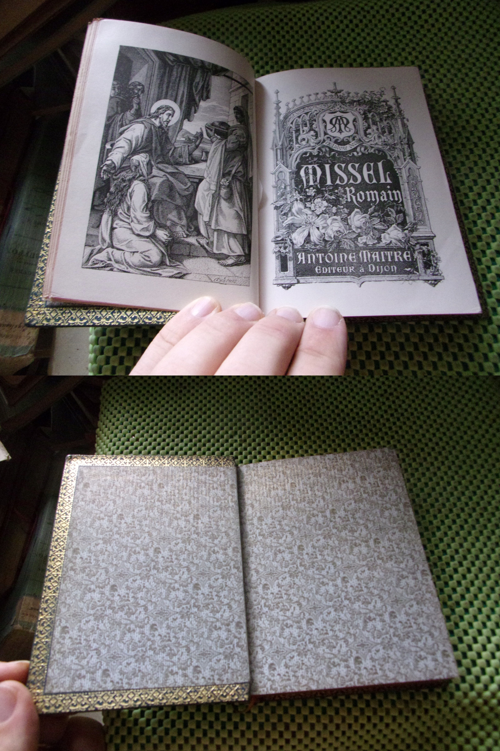 piękny MSZAŁ RZYMSKI łacina / francuski SKÓRA ryciny ZŁOCENIA jedwab 1920