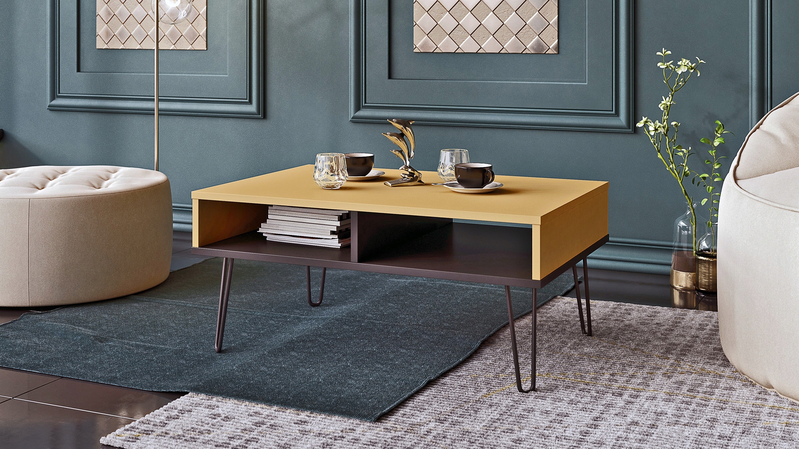 PIKO YELLOW DIJON / черный - СТОЛ LOFT RETRO GOLD