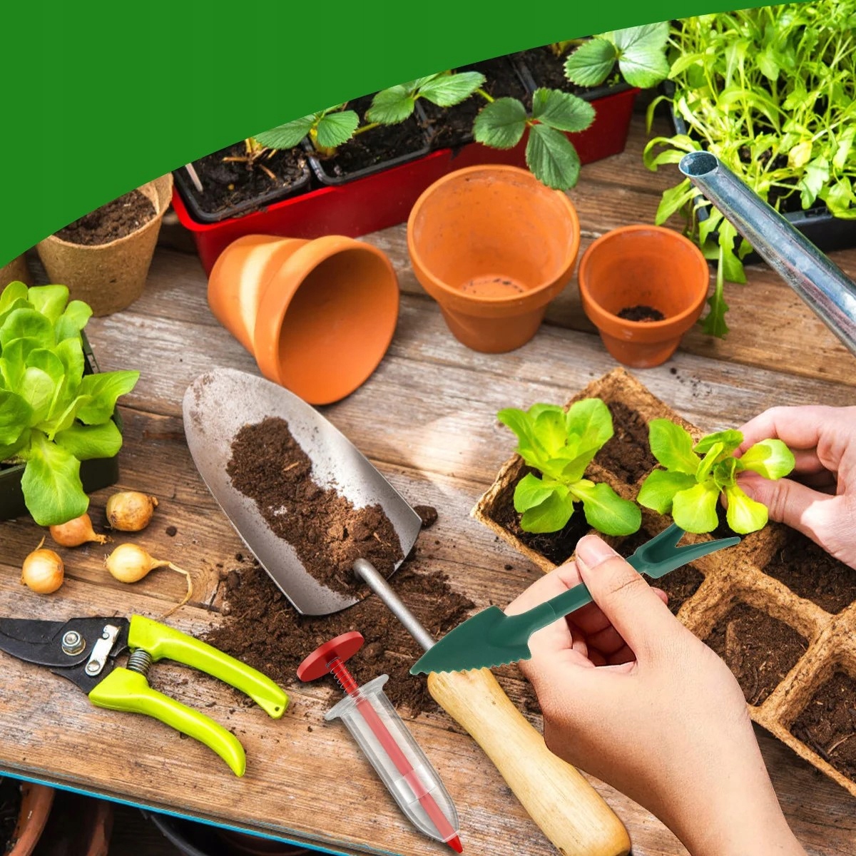 Оборудуйтепрофессиональный набор для посадки растений это облегчит вашу работу в саду, а процесс посадки сделает быстрее и удобнее, чем когда-либо прежде. Этот полный комплект содержит все необходимое для плетения и посадки рассады, чтобы вы могли без лишних усилий наслаждаться прекрасным садом.