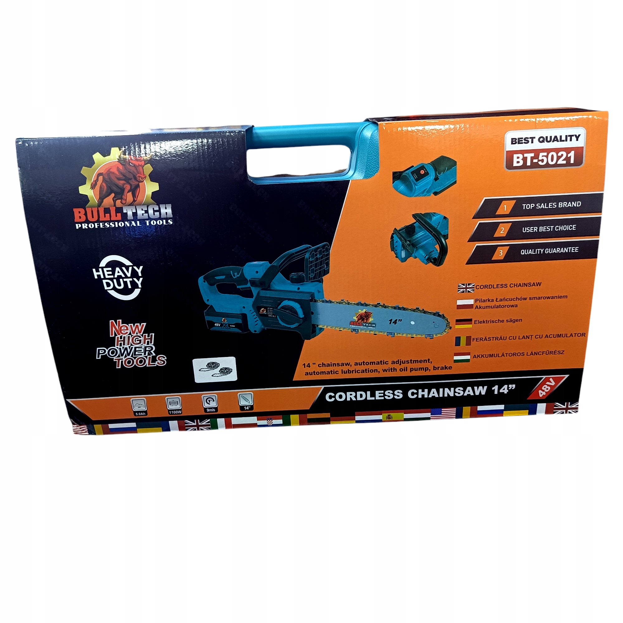 АККУМУЛЯТОРНАЯ ЦЕПНАЯ ПИЛА ДЛЯ ДЕРЕВА 2 X 48V 5AH 14" BULL-TECH — это устройство с чрезвычайно эффективной и компактной конструкцией. Благодаря прочным материалам и современным технологиям эта пила подойдет не только для строительных работ по дереву, но также и в домашнем хозяйстве, сельском хозяйстве и садоводстве. Пила была специально разработана для ухода за кронами деревьев, что делает ее полезной. универсальный инструмент для домашних и лесных работ.