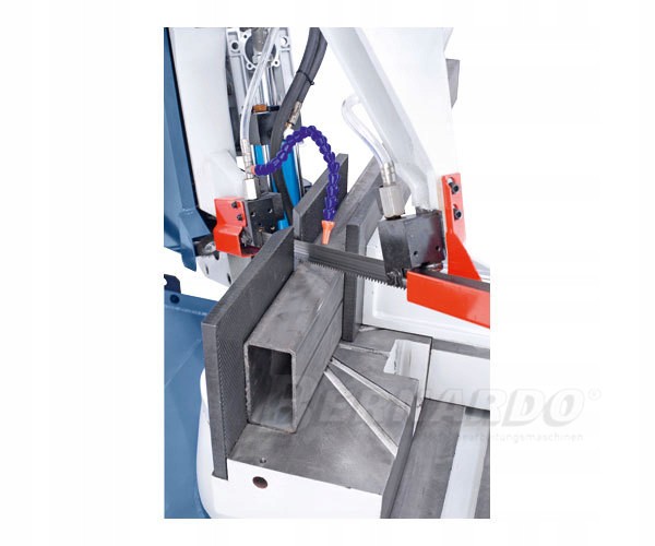 Полуавтоматическая ленточная пила, оснащенная современными гидравлическими механизмами подъема и опускания стрелы и гидравлическими быстрозажимными тисками. Очень понятная, но продвинутая панель управления машиной. Резка до 460 мм.