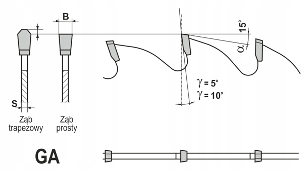 - специально профилированная форма зубьев и лезвия GA5 или GA10 (трапециевидные прямые зубья) позволяют сохранить хорошее качество обрабатываемой поверхности.