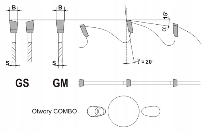 - пилах с зубьями GS особенно рекомендуются для резки сухой и/или твердой древесины.