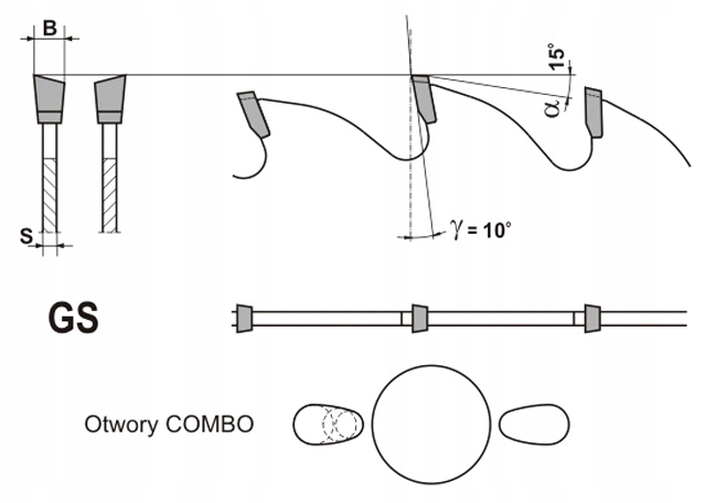 - соответствующе подобранная геометрия зубьев и форма пластины GS 10 (попеременно косая)
