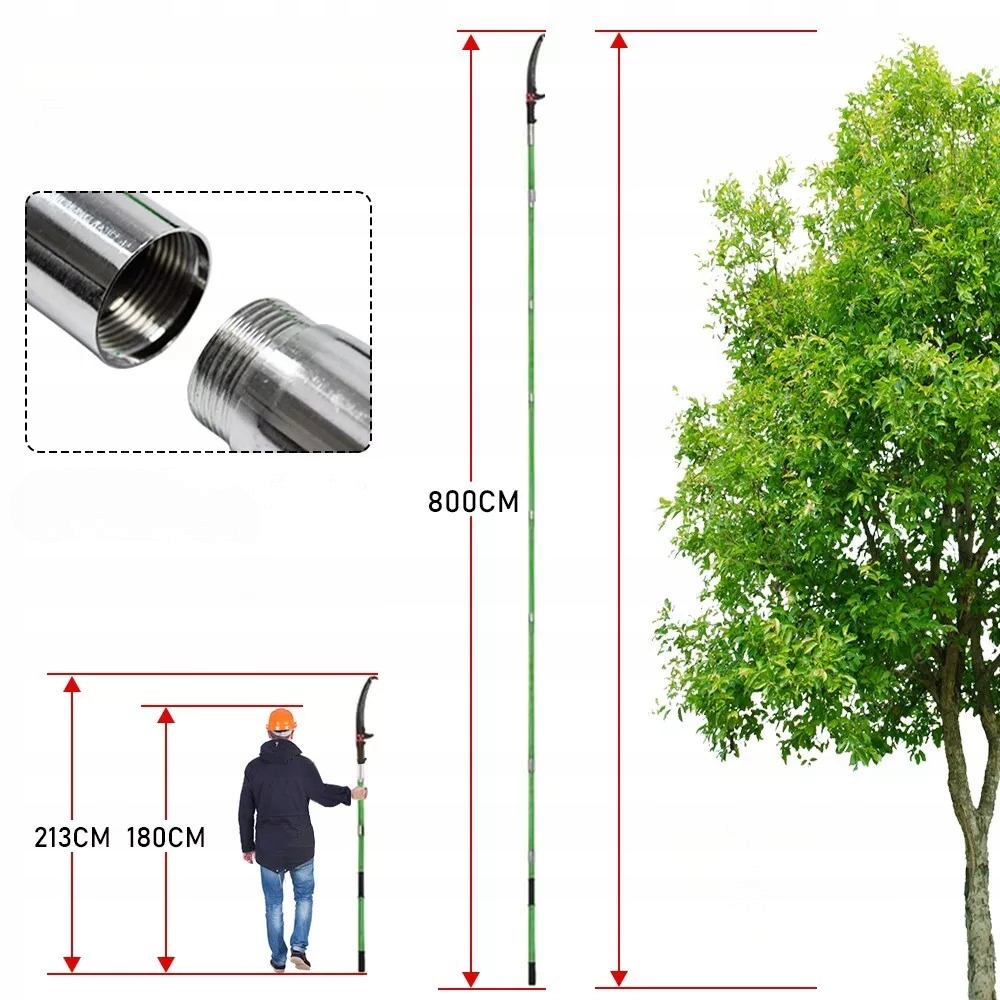 - предназначен для обрезки высоких ветвей, но также может сократить низкие ветви, кусты, деревья и т. Д. Это предотвращает несчастные случаи.