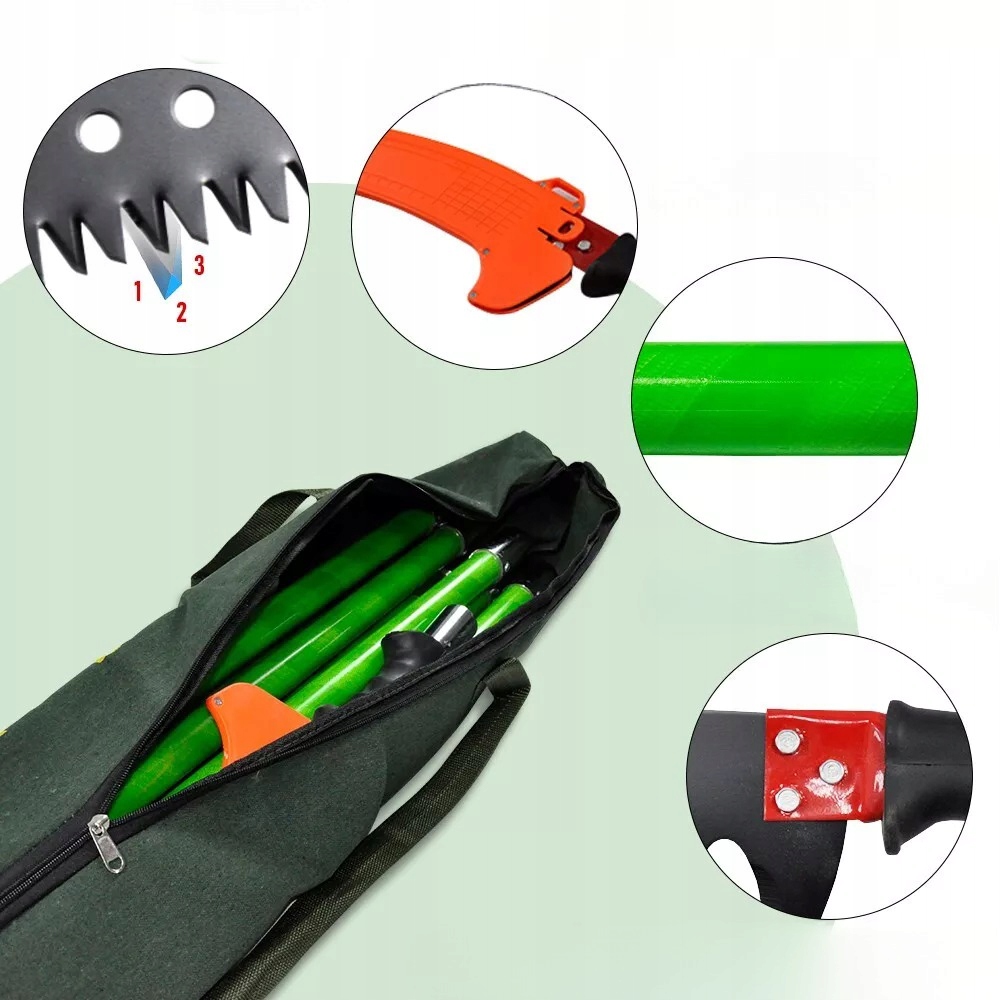 - Вы можете обрезать высокие ветви без использования лестницы. Доставляется с транспортной сумкой для безопасного хранения и легкого переноса.