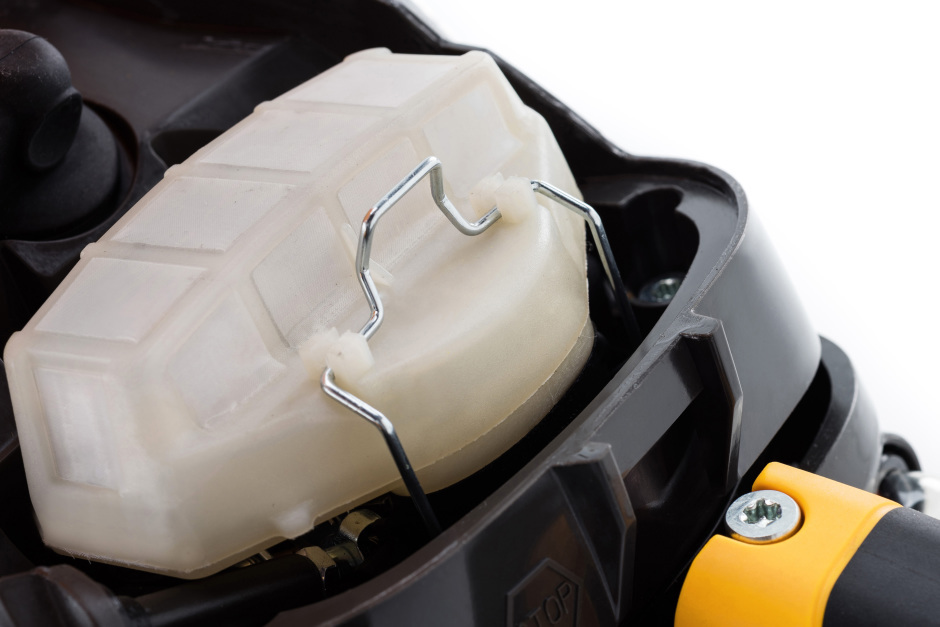 - Проведение технического обслуживания становится быстрым и простым благодаря таким функциям, как рукоятка без ключа, регулируемый натяжной ключ и удобное смотровое стекло для проверки уровня топлива.