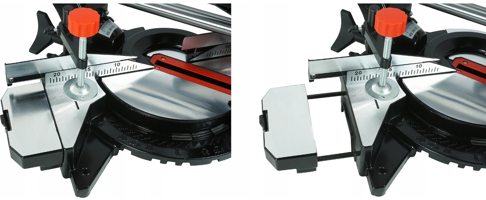 Бесступенчато выдвижные удлинители стола со складными упорами облегчают работу с более длинным материалом. Ограничители используются для блокировки материала, чтобы он не смещался вбок во время работы.