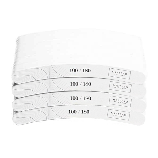 Пилочка для ногтей БАЗОВАЯ с градацией 100/180 и популярной формой банана – это узкая пилочка со среднеострой градацией, предназначенная для проработки гелевых, акриловых и акрилово-гелевых укладок и подготовки натуральной ногтевой пластины к маникюру. Сердцевина файла изготовлена из чрезвычайно прочной высококачественной бумаги, что гарантирует повышенную долговечность и стойкость файла. Он также исключительно бережен к ногтевой пластине – гарантирует легкую работу без риска ее распиливания. Пилочка для ногтей согнутой, округлой формы банана позволит точно подготовить массу вокруг кутикулы без риска ее повредить и в труднодоступных местах у боковых краев ногтя.