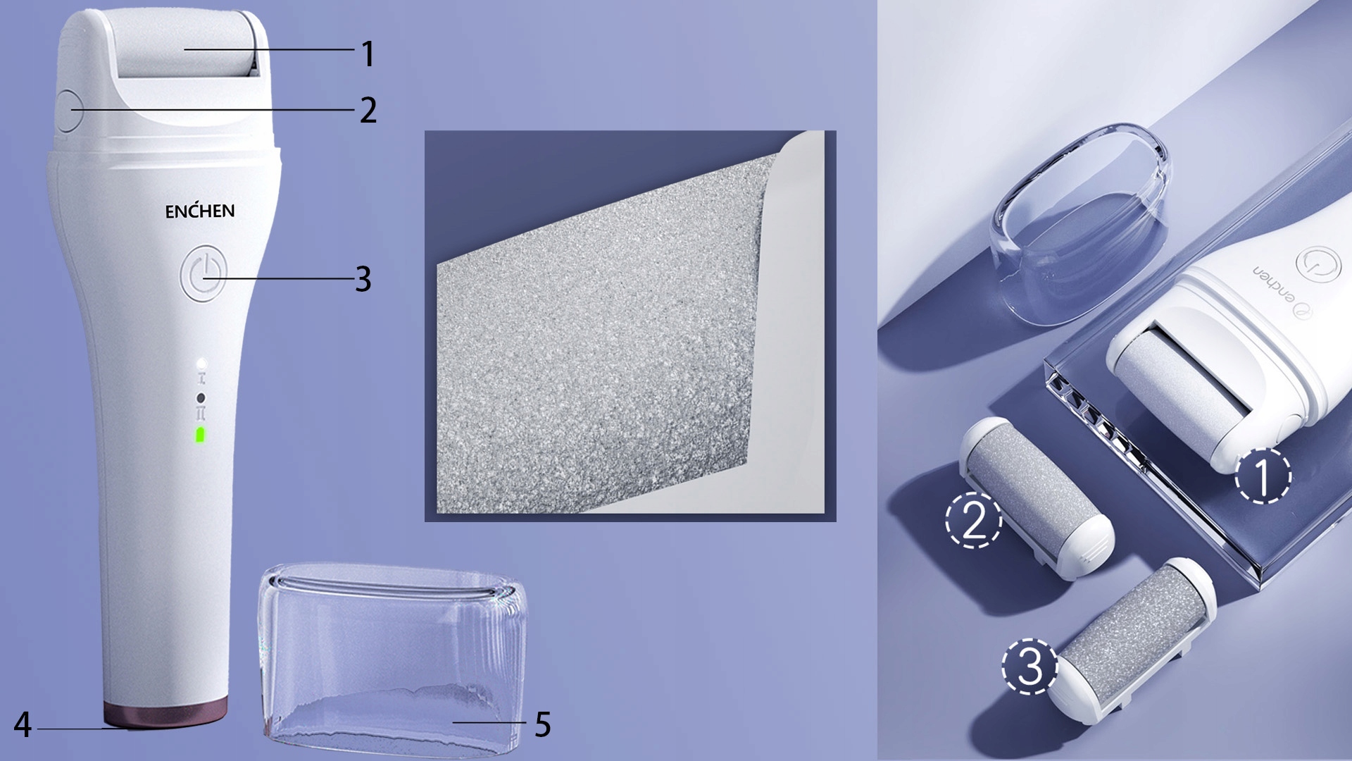 ЭЛЕКТРИЧЕСКАЯ Пилка для пяток ENCHEN Rock Терка для пемзы IPX6 + 3 ролика