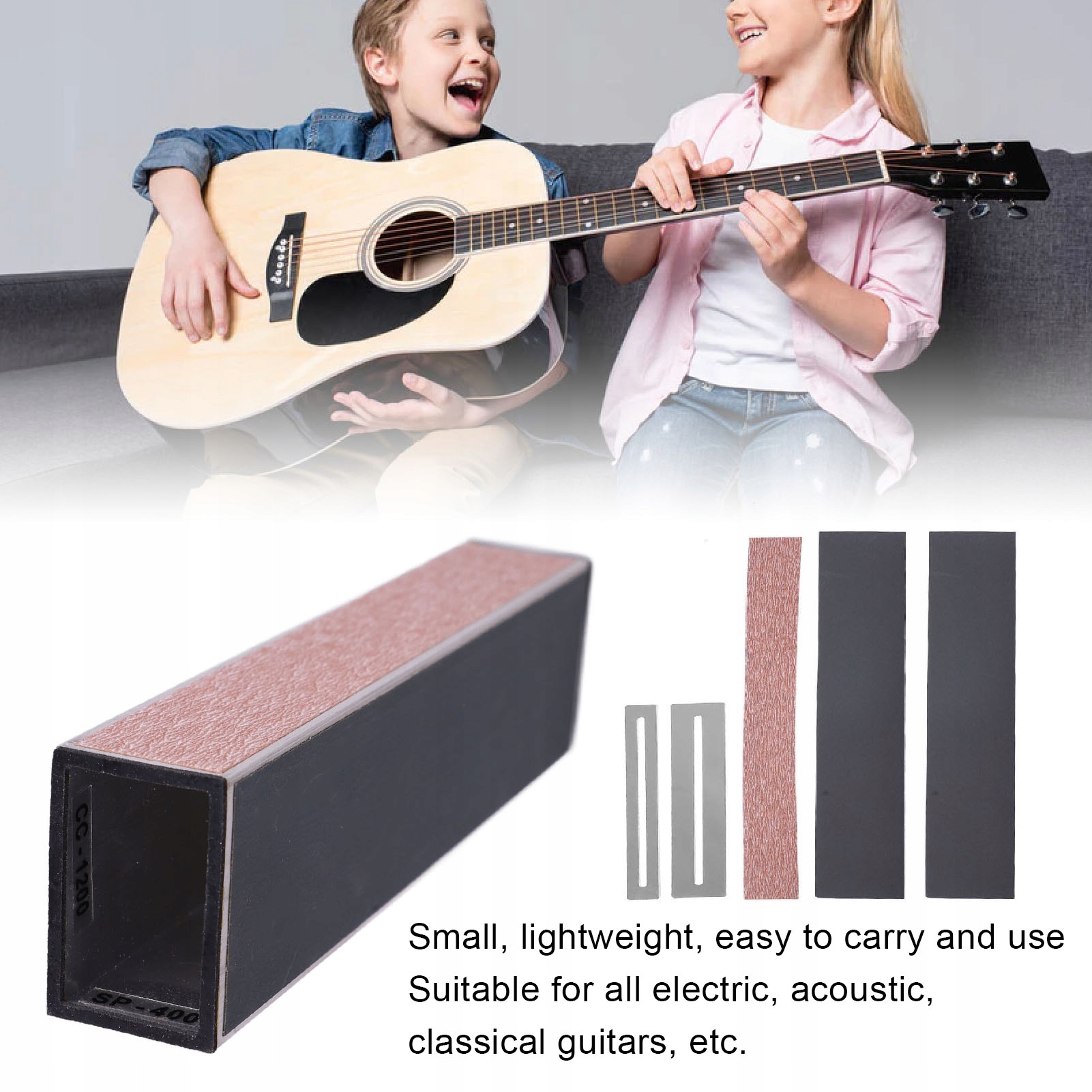 5. В КОМПЛЕКТ ВХОДЯТ: Набор напильников для выравнивания гитары, включая планку для выравнивания гитарных стоек, два фиксатора накладки гитарного грифа, сменную наждачную бумагу и две точилки
