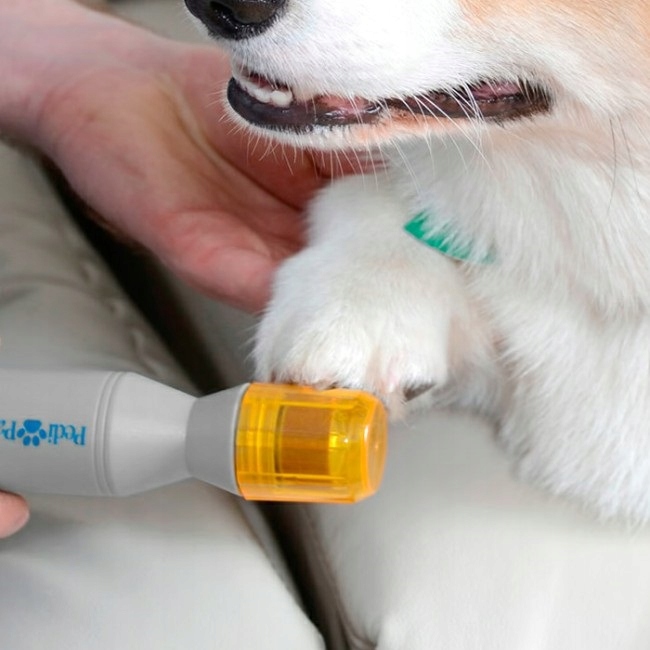 Напильник имеет защитную крышку с отверстием для коготь, которое ограничивает возможность чрезмерного истирания. У крупных собак чехол можно снять и подпилить коготь до нужной длины.