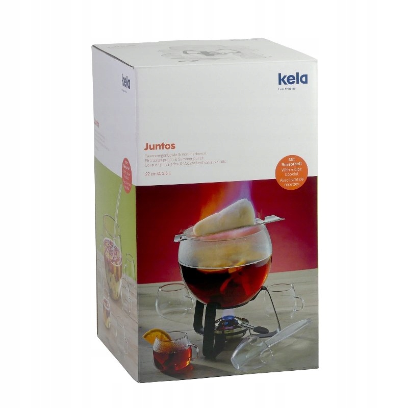 Стильные вечера с друзьями. Набор включает в себя:- Теплостойкий стеклянный пунш-чаша,- емкость 3,5 л,- 6 стаканов,- акриловый ковш,- плоскогубцы из нержавеющей стали,- металлическая стойка с диаметром 13,5 см,- безопасная горелка на пасте из нержавеющей стали. горелка.