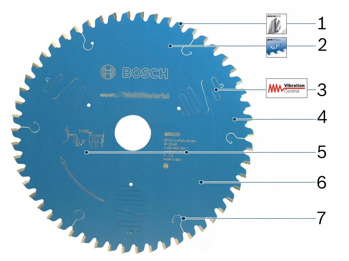 - Зубья, изготовленные Bosch из очень прочных твердосплавных зерен Microteq, обеспечивают исключительную долговечность