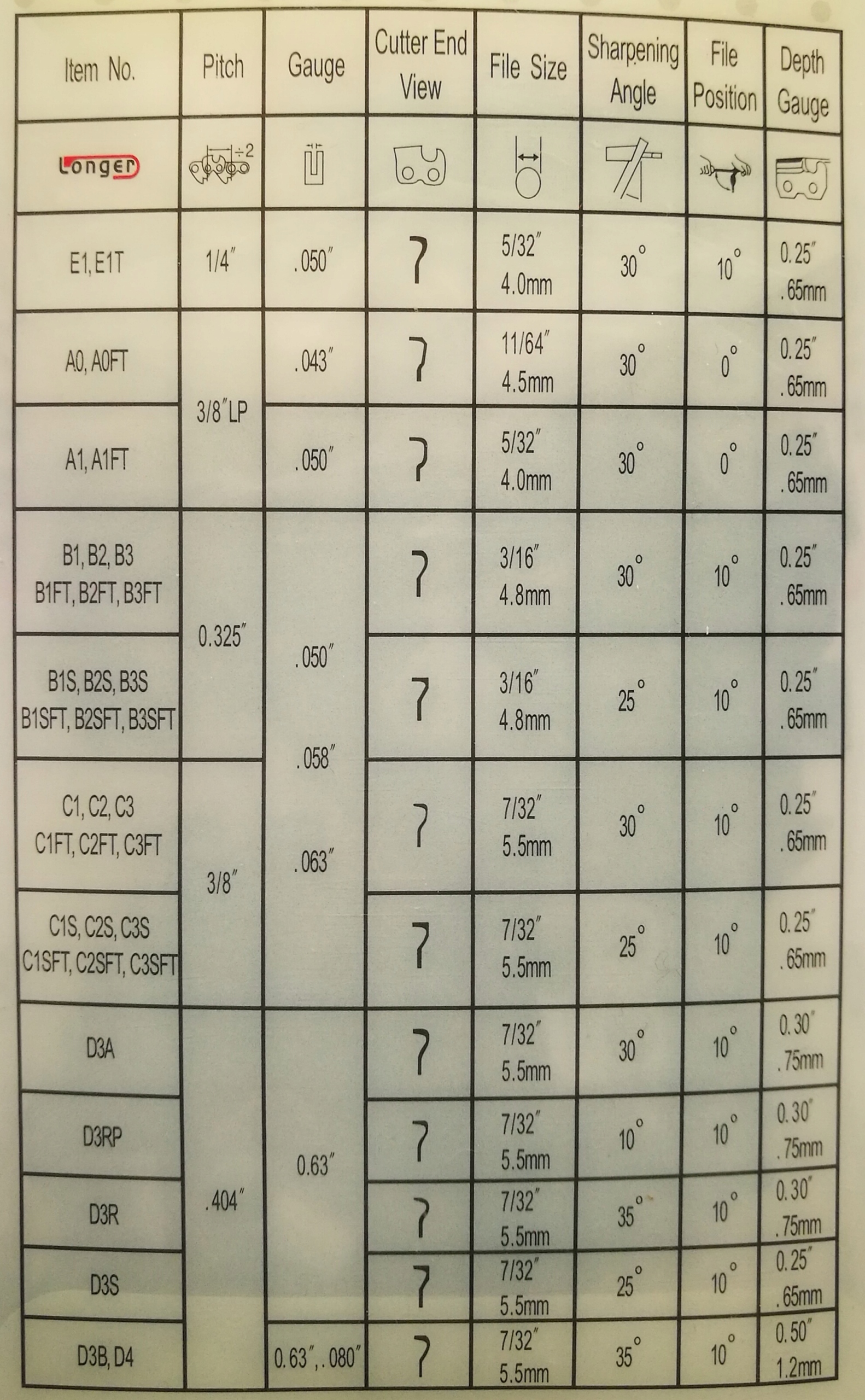 3/8" - Другими словами, это расстояние между последующими направляющими звеньями цепи.