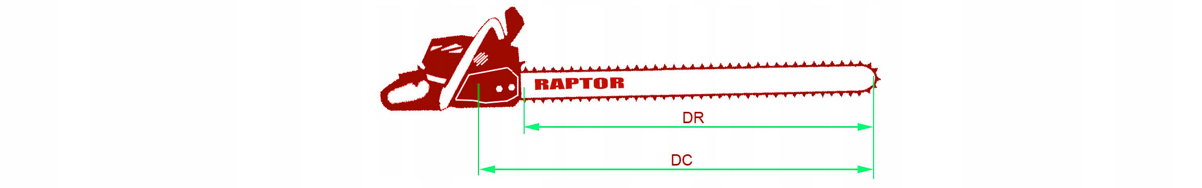 Рабочая длина (DR) выражается в дюймах или сантиметрах и условно определяет выступающие из пилы направляющие.