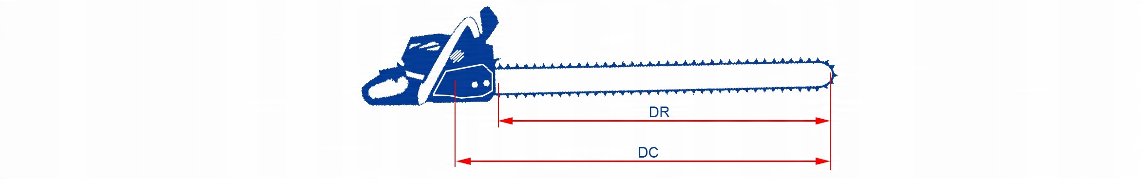 Рабочая длина (DR) выражается в дюймах или сантиметрах и условно определяет направляющие, выступающие из пилы.