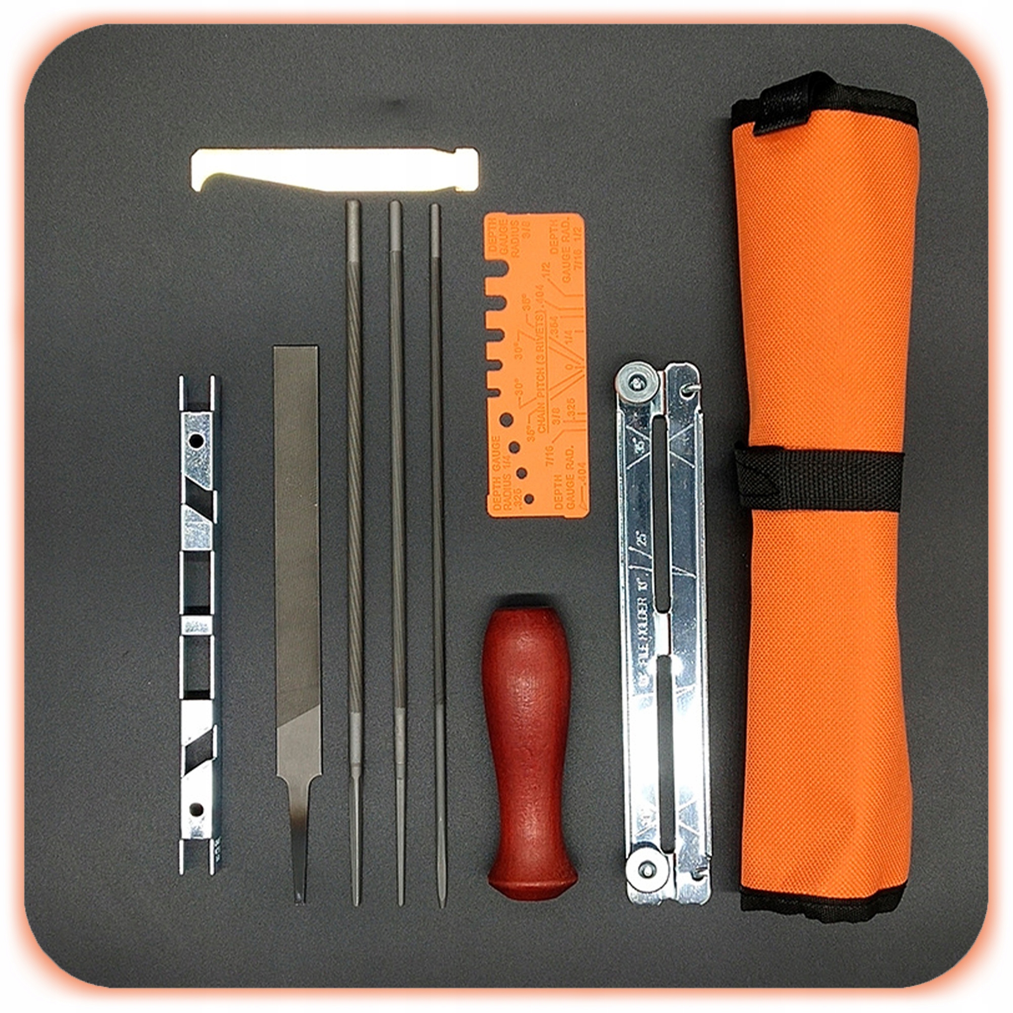 Набор содержит все необходимые инструменты для быстрой, точной и безопасной заточки цепи - без необходимости демонтажа пилы.