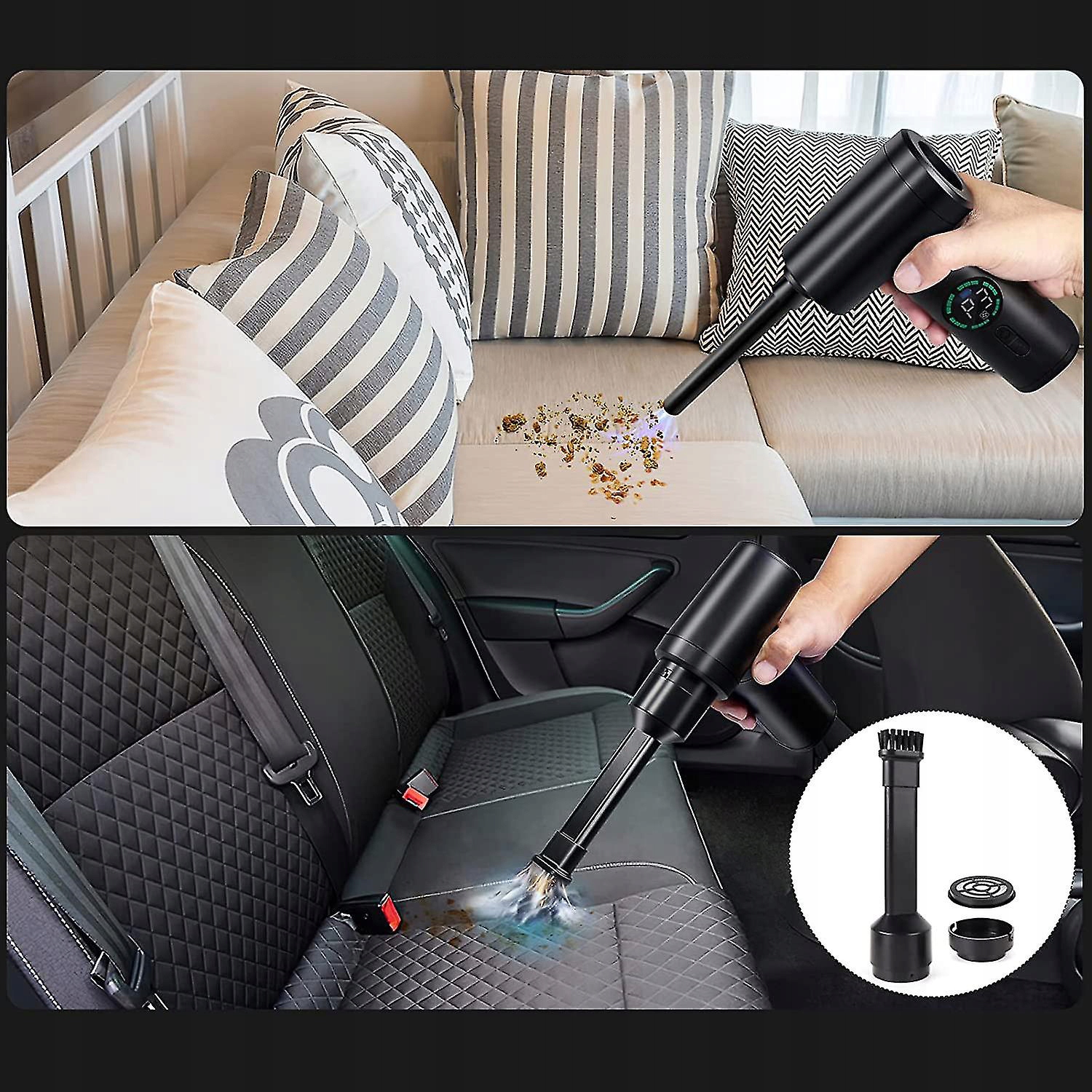 Почувствуйте мгновенную чистоту благодаря новой конструкции Пылесос со сжатым воздухом, который удаляет 99% пыли всего за 1 секунду. Благодаря мощному двигателю, электрическому пылеуловителю и максимальной скорости 110 000 об/мин очищается каждый уголок.