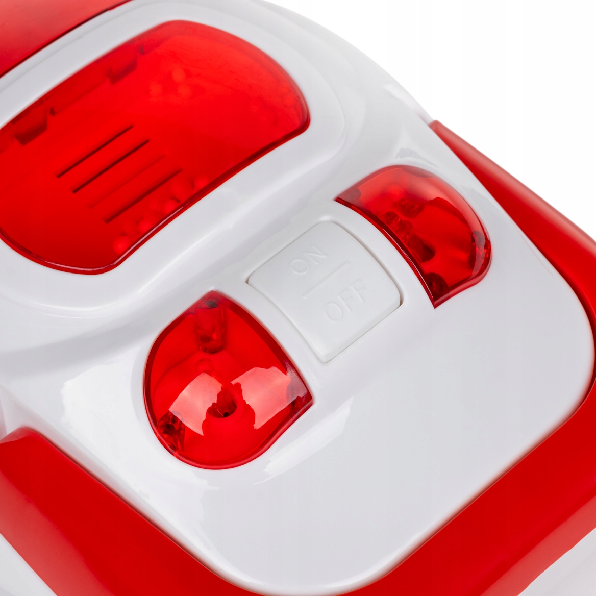 - подвижные колеса, кнопка включения/выключения, подсветка при включении включён, звук настоящего пылесоса.