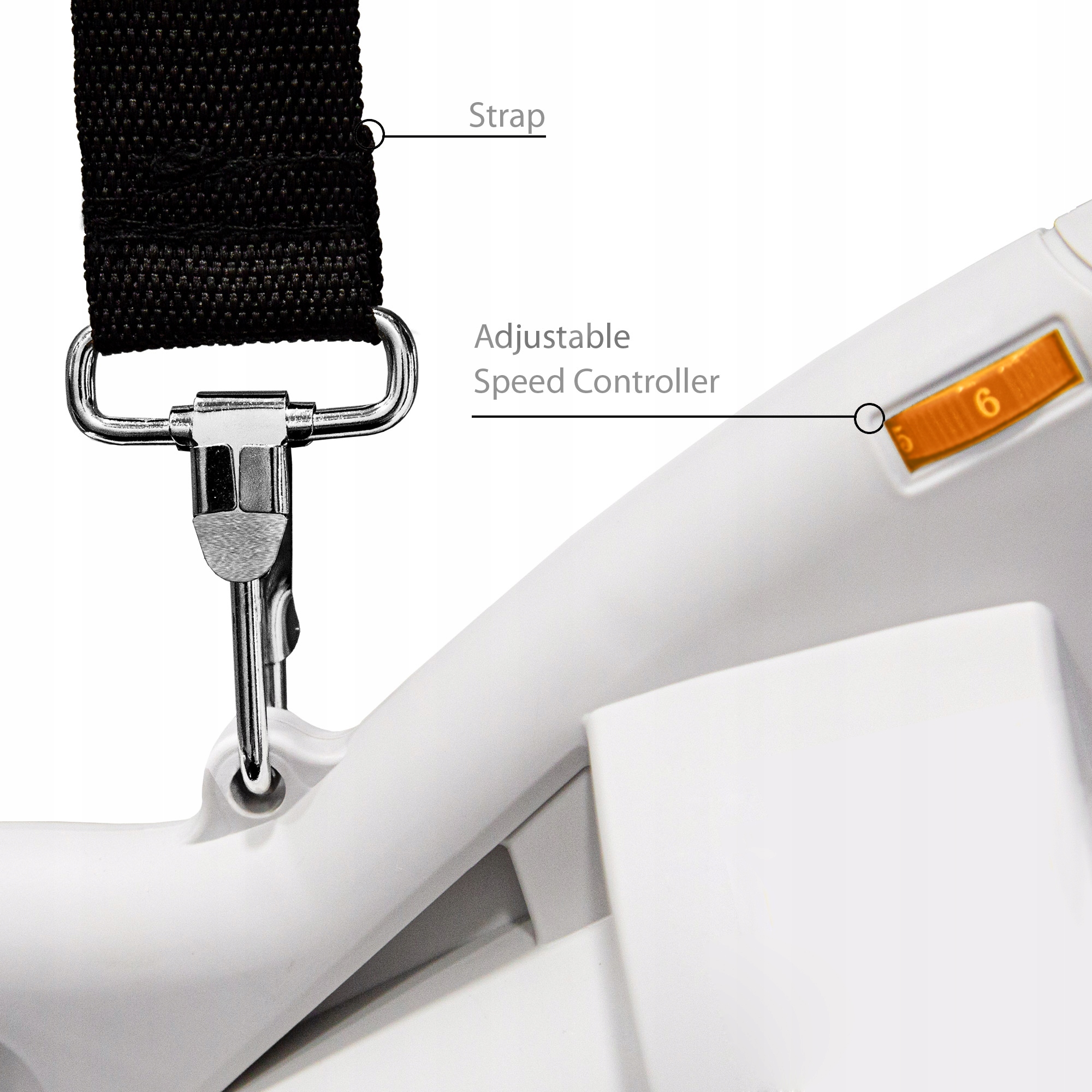 Скорость обдува плавно регулируется в диапазоне от 170 до 270 км/ч с помощью ручки, расположенной на ручке.