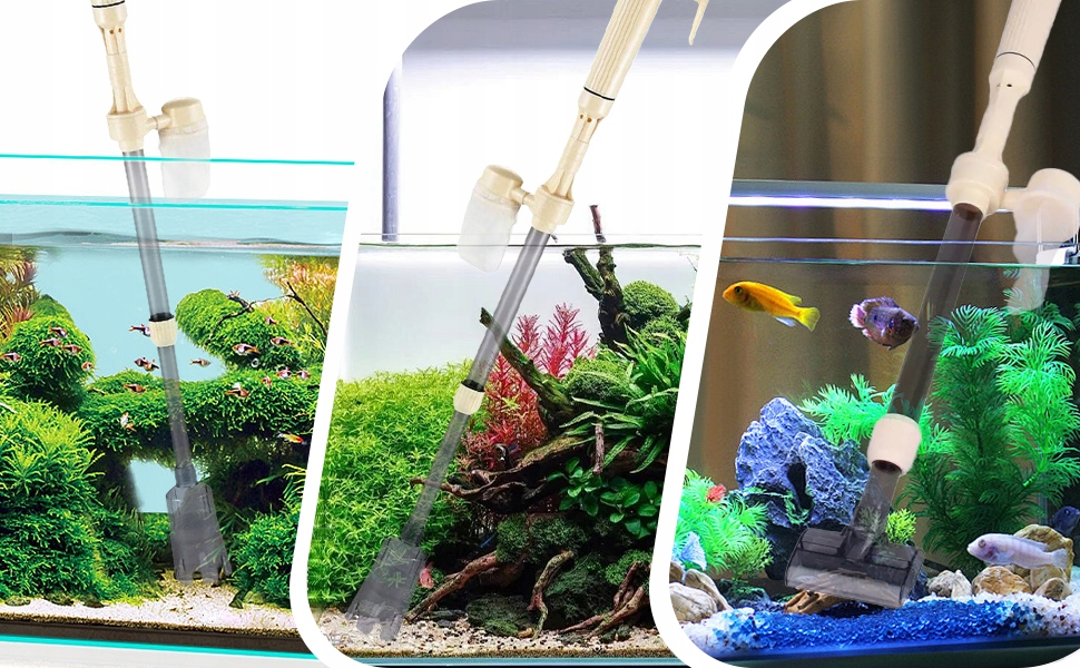 - Многофункциональный электрический сифон - замена воды, уборка гравия пылесосом, удаление водорослей, фильтрация примесей.