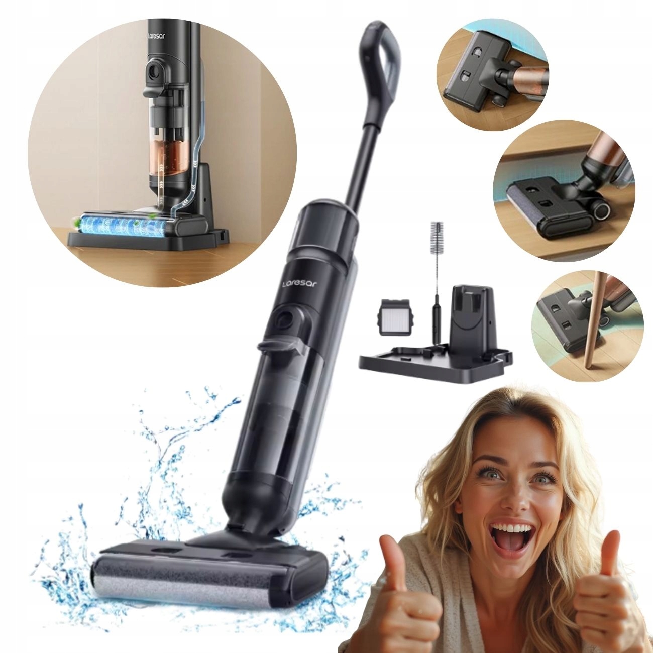 ODKURZACZ BEZPRZEWODOWY LARESAR M3 MOPUJĄCY PIONOWY 3W1 SAMOCZYSZCZACY SIĘ