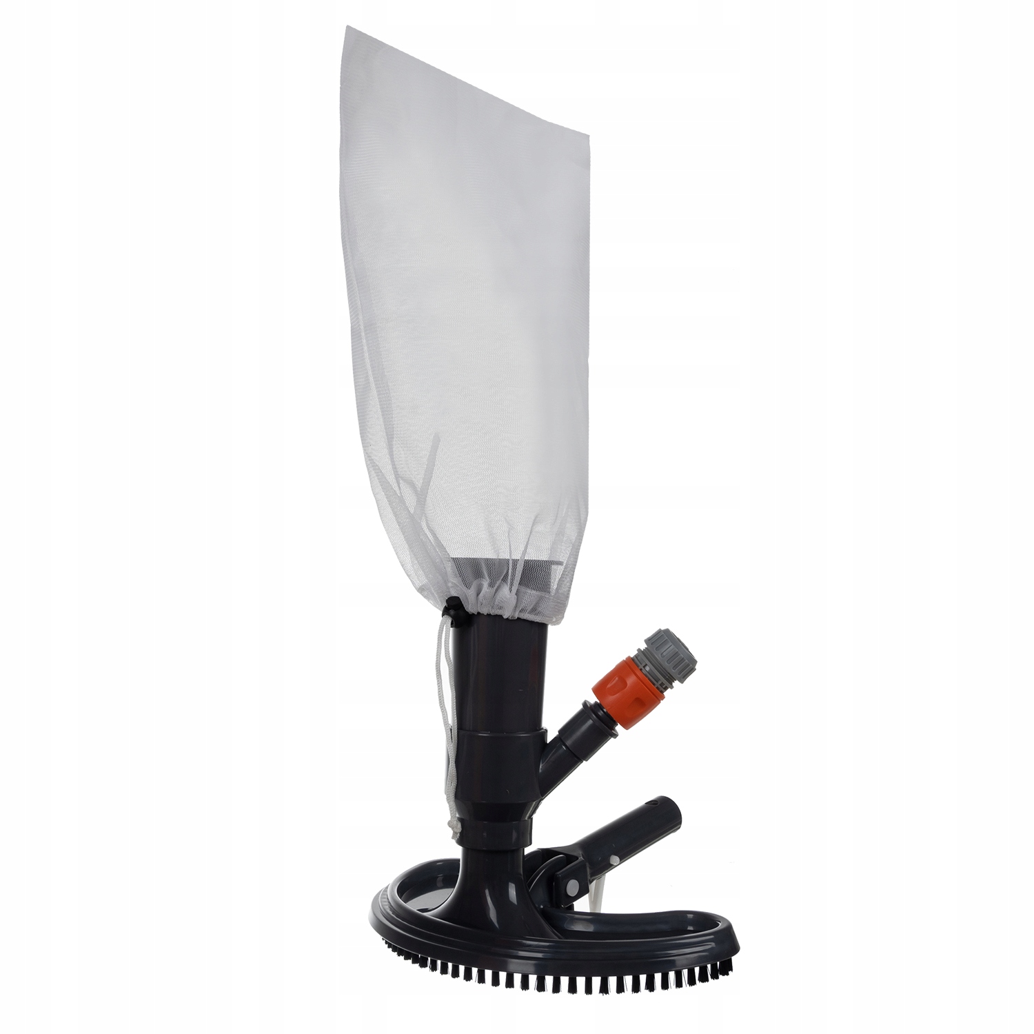 Использует воду под давлением из садового шланга. Водяной пылесос подключается к садовому шлангу с помощью быстрого разъема и перемещается по бассейну. Под воздействием давления воды пылесос засасывает грязь в мешок и сбрасывает воду в бассейн.