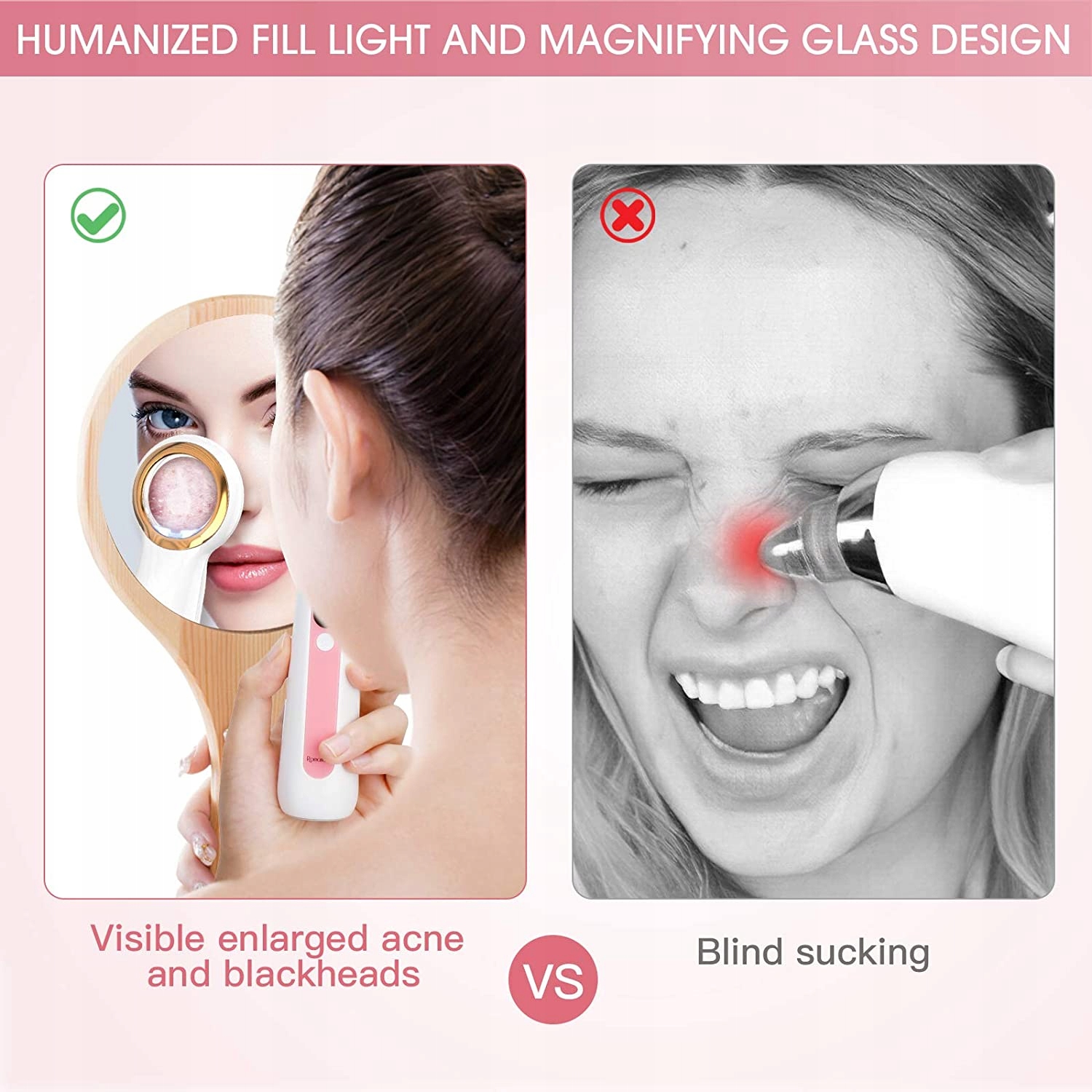 - 【Простота в использовании благодаря функции гуманизированного заполняющего света】: это оптическое средство для удаления черных точек имеет функцию видимого светодиодного света и дизайн увеличительного стекла, что, как правило, позволяет избежать очистки угрей и может увидеть эффект очистки, прост в эксплуатации и использовании. Использование технологии физического всасывания обеспечивает глубокую очистку кожи без проблем с давлением, болью, повреждением кожи или образованием рубцов. Наслаждайтесь профессиональным уходом за кожей дома.