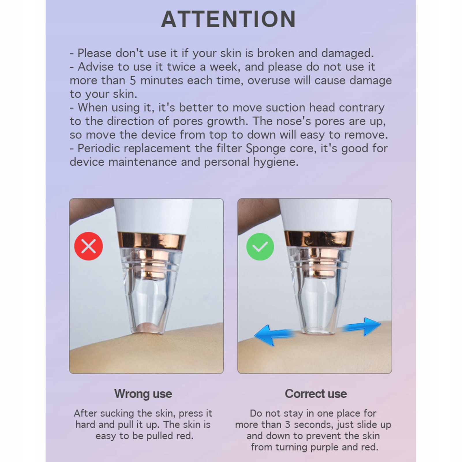 3. Многофункциональный дизайн: благодаря нескольким уровням прочности и сменным всасывающим насадкам он отвечает индивидуальным потребностям и может использоваться на различных участках, включая лицо и Т-зону.